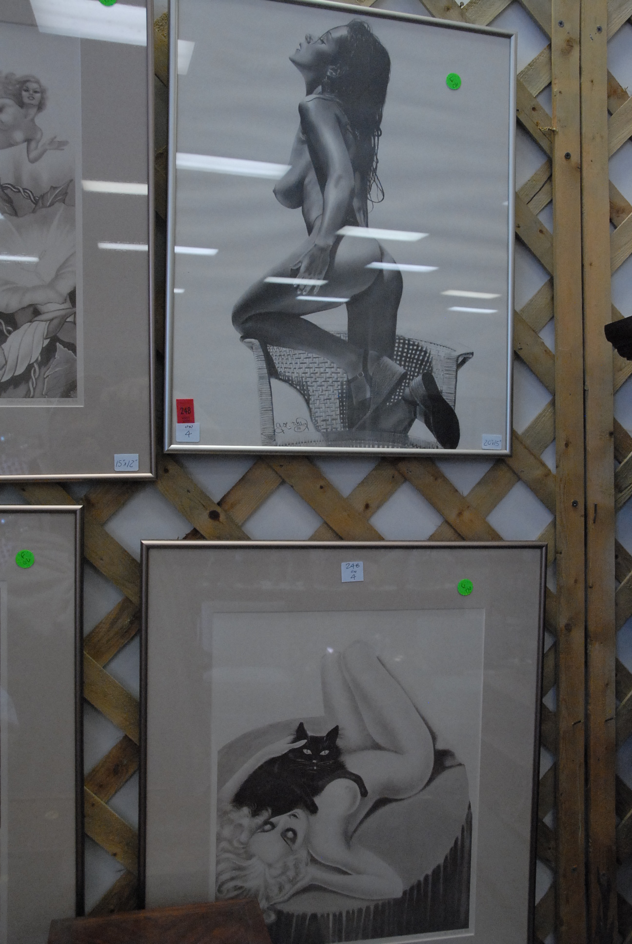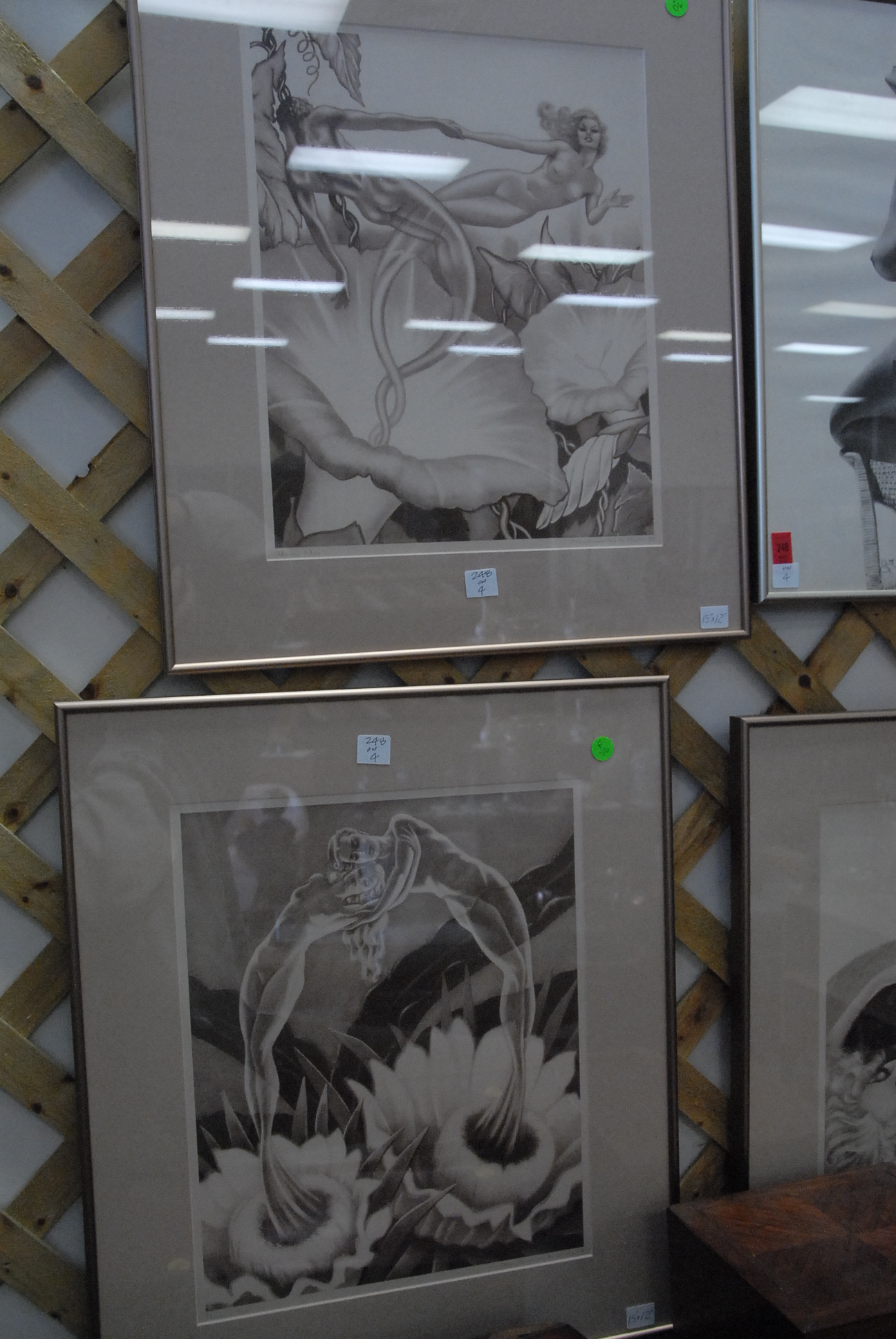 Four piece lot of vintage art deco prints 1938 Wm.A. Reynolds Jr., signed pen & ink, nude.