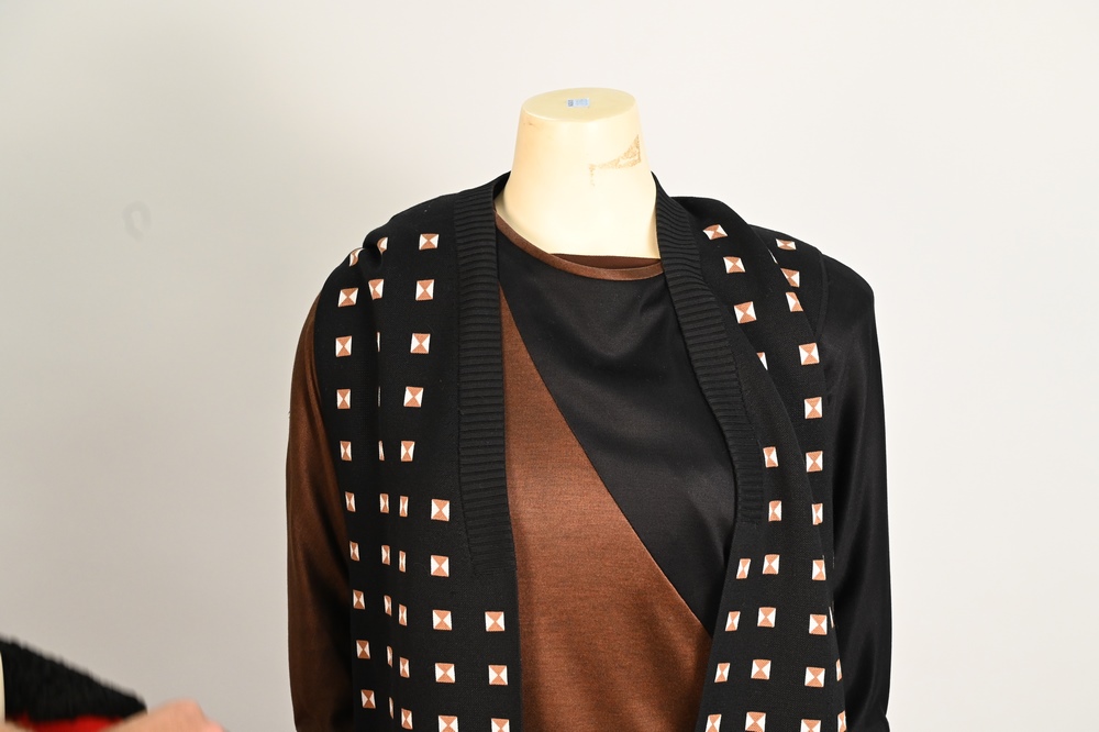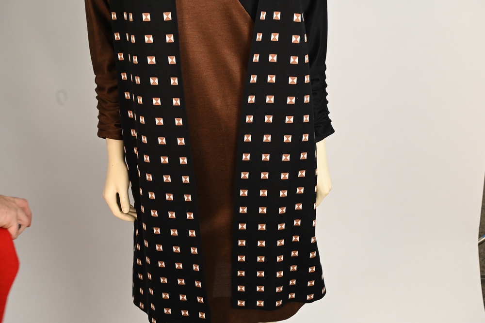 Lot 248: Hermes Dress and Knit Vest, black and brown jersey knit, zip back, ruched sleeve dress; along with a sleeveless knit vest with waist…