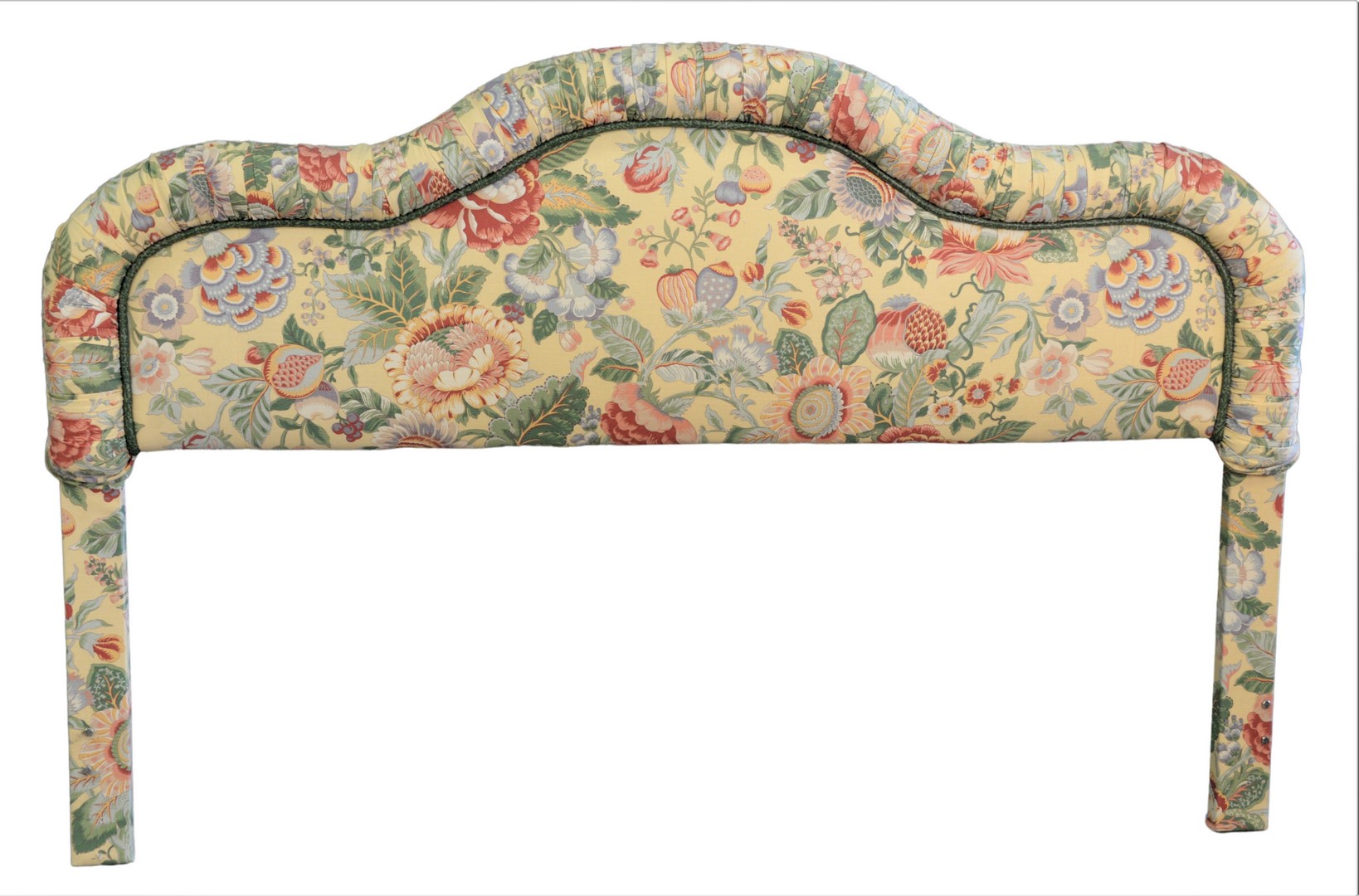 King Size Upholstered Headboard having matching yellow custom quilted comforter and pillows; along with matching comforter and pillows, height 50 inches.