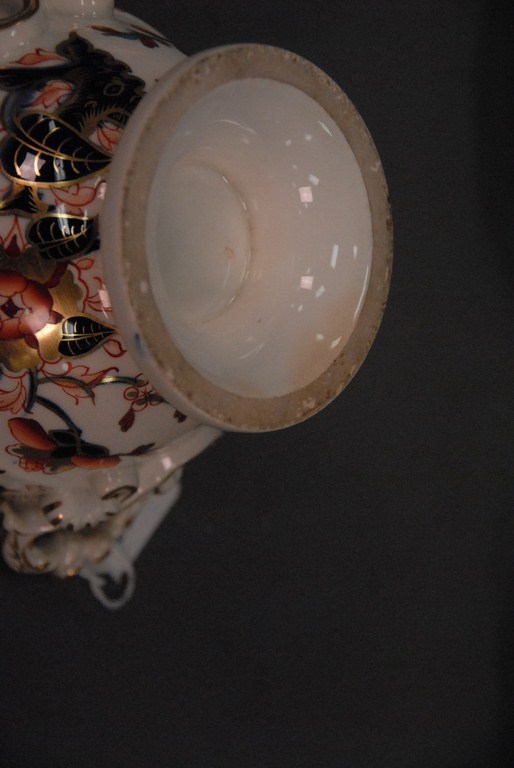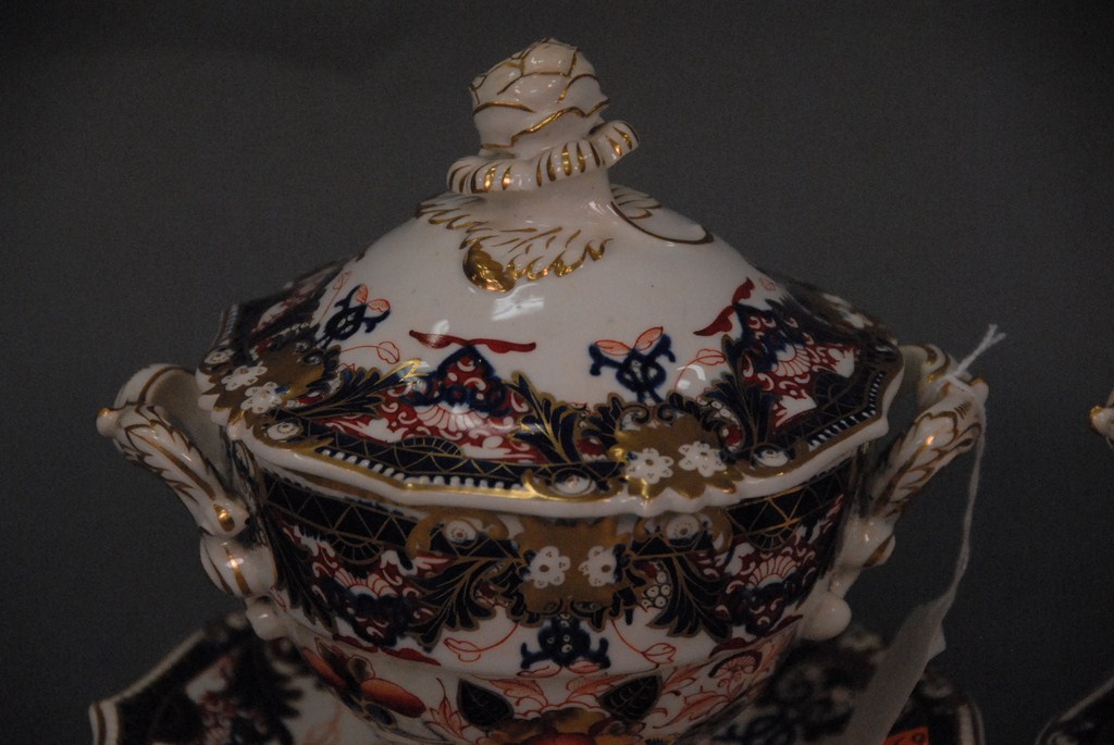 Lot 248: Pair of small covered tureens with under plates, probably English in the manner of Royal Crown Derby.