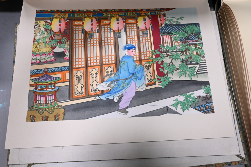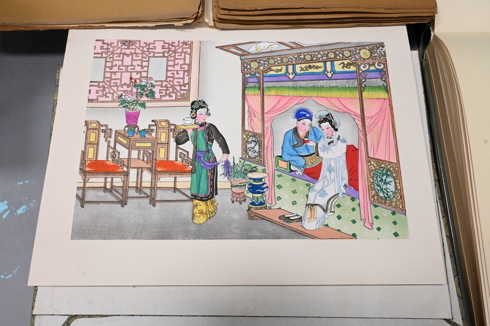 Lot 248: Three Albums of Portfolio Books, to include ornements de perles des peuples finnois et siberiens, with costume and clothing pictures, chinese book with prints and a cloth covered oriental book with hand colored paintings.