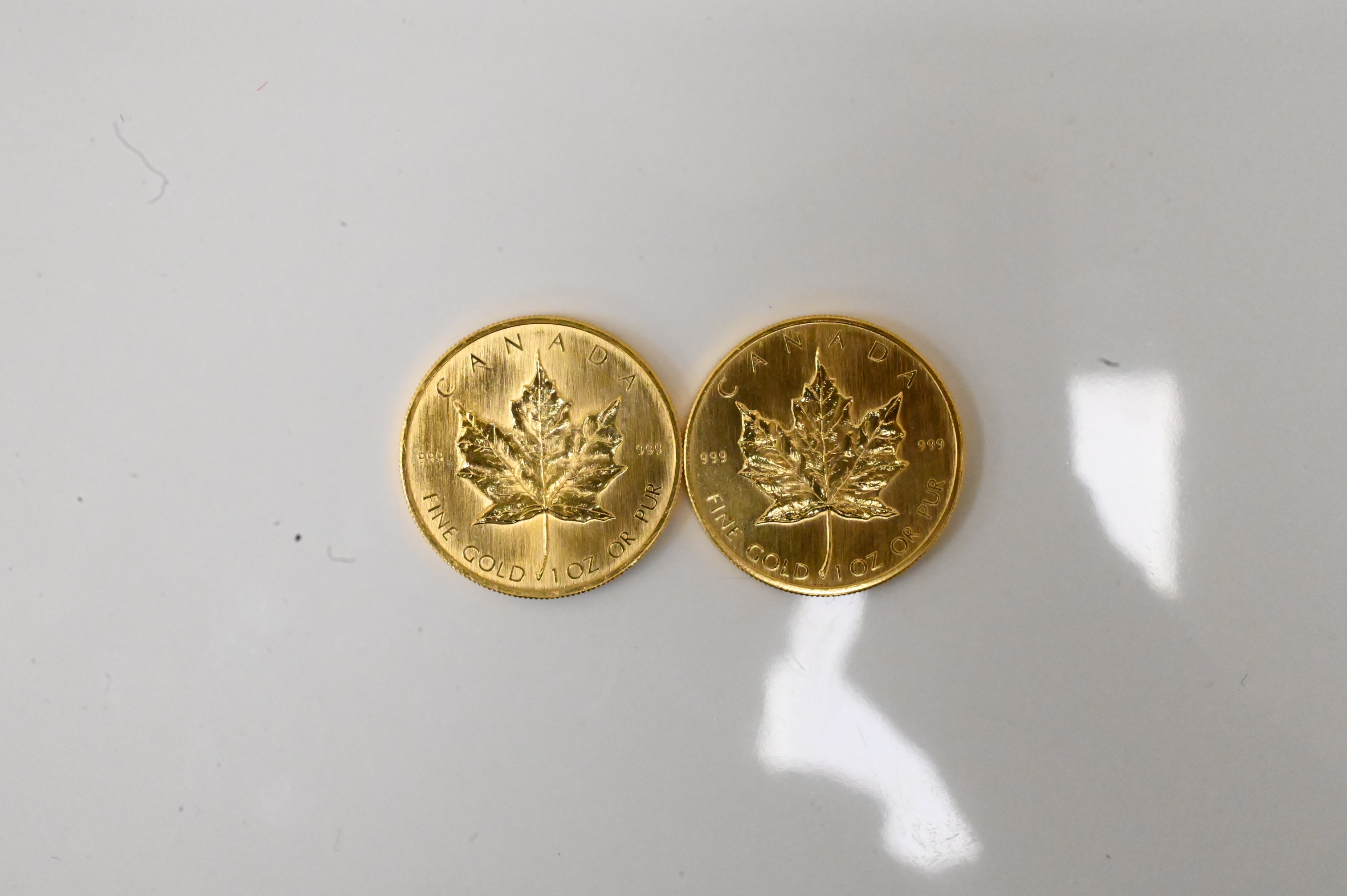 Two 1980 Canadian One Ounce Fine Gold $50 Maple Leafs, 2 oz total