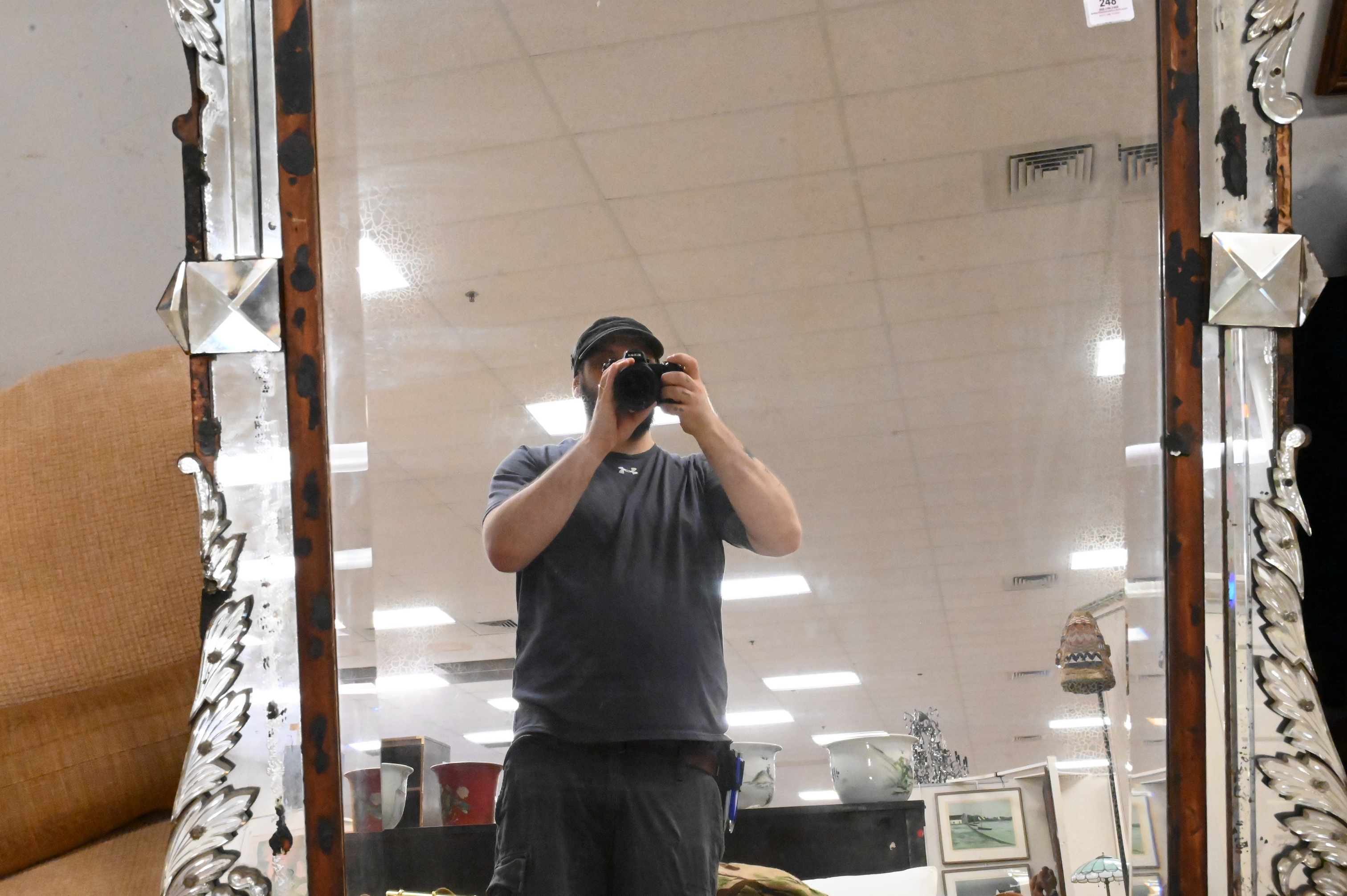 Lot 248: Venetian Monumental Etched Glass Over Mantle Mirror