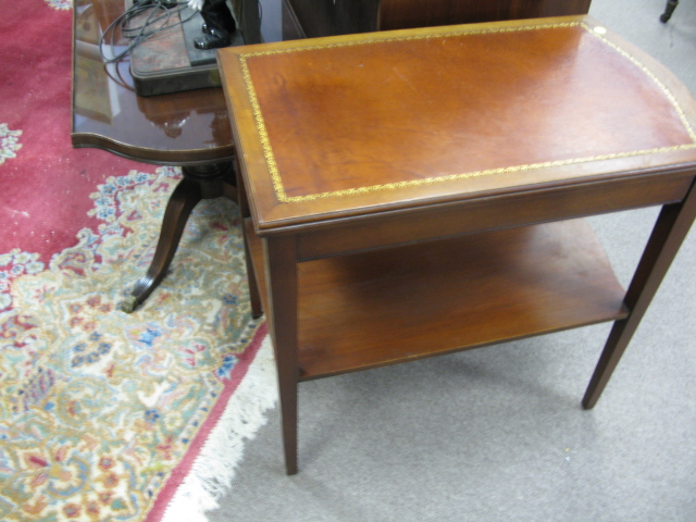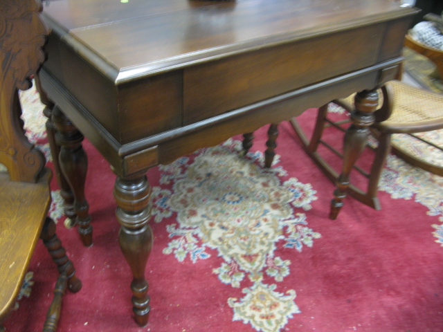 Walnut spinet desk and oak carved side chair, caned Victorian rocker along with 3 living room tables.