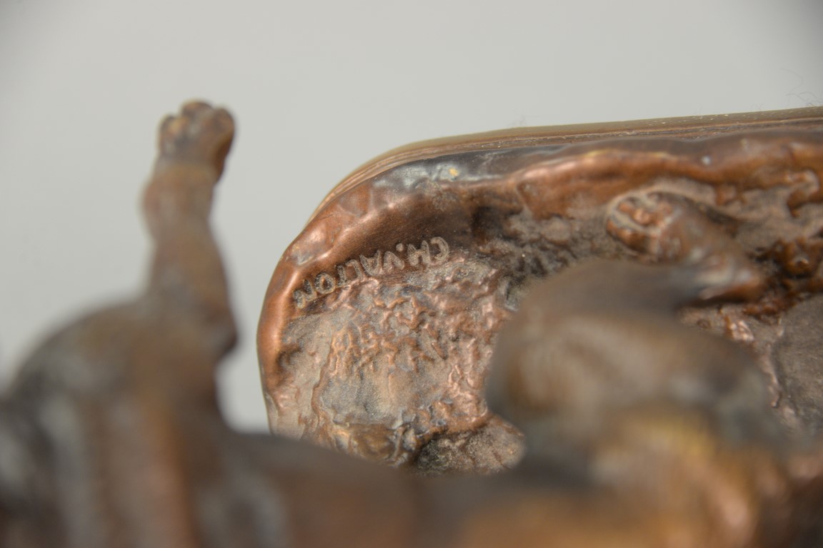 After Charles Valton 1851-1918 bronze Passez Au Large Keep out of the Way, marked on base CH Valton, ht. 9 1/2in., lg. 9 1/4in .