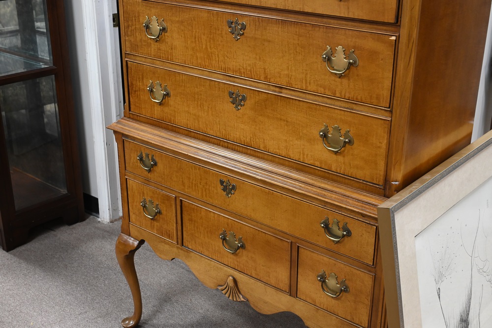 Chippendale Style Tiger Maple Highboy, height 75 inches, width 40 1/2 inches.