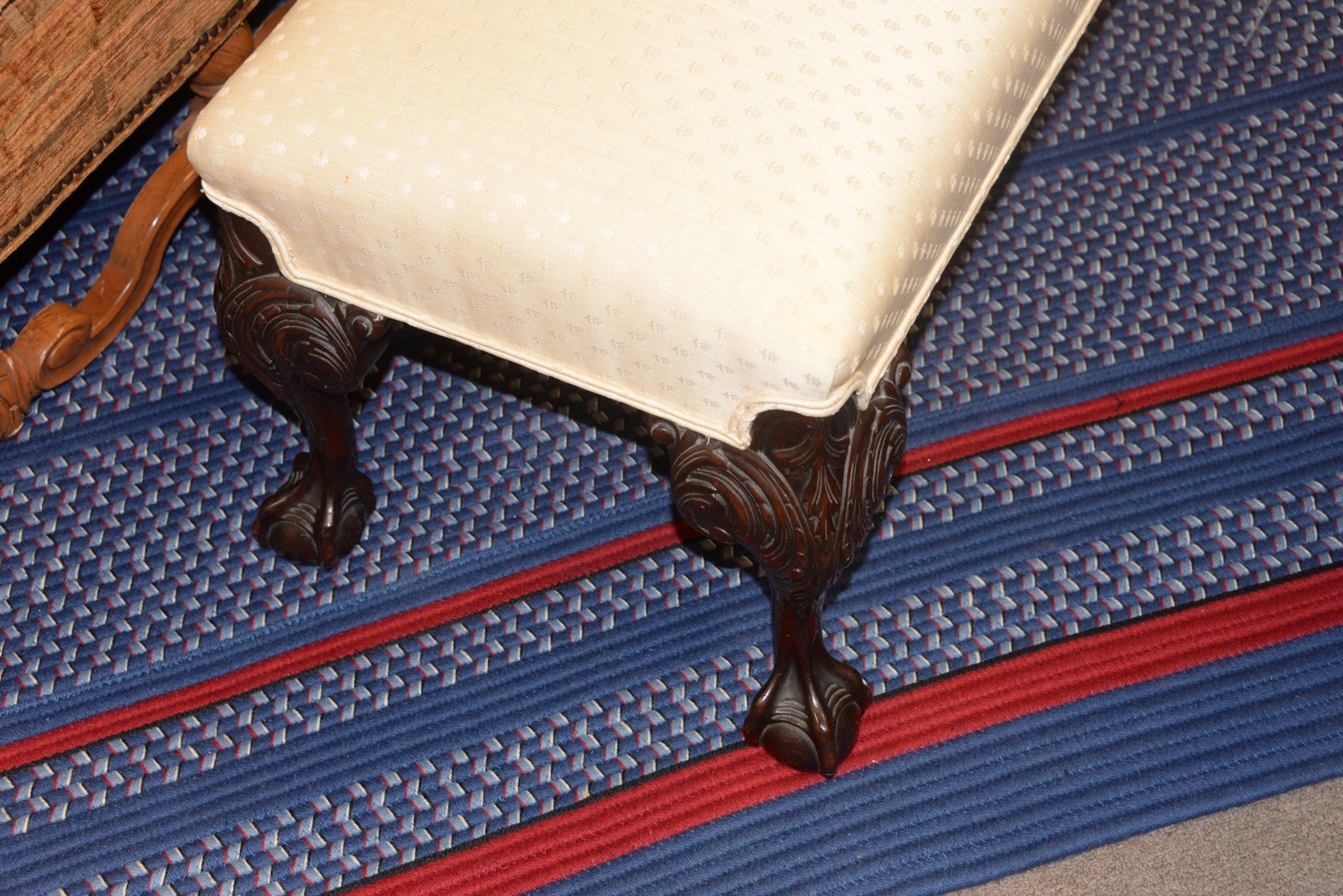 Chippendale Style Upholstered Bench, having ball and claw feet, height 16 inches, top 17″ x 39″.