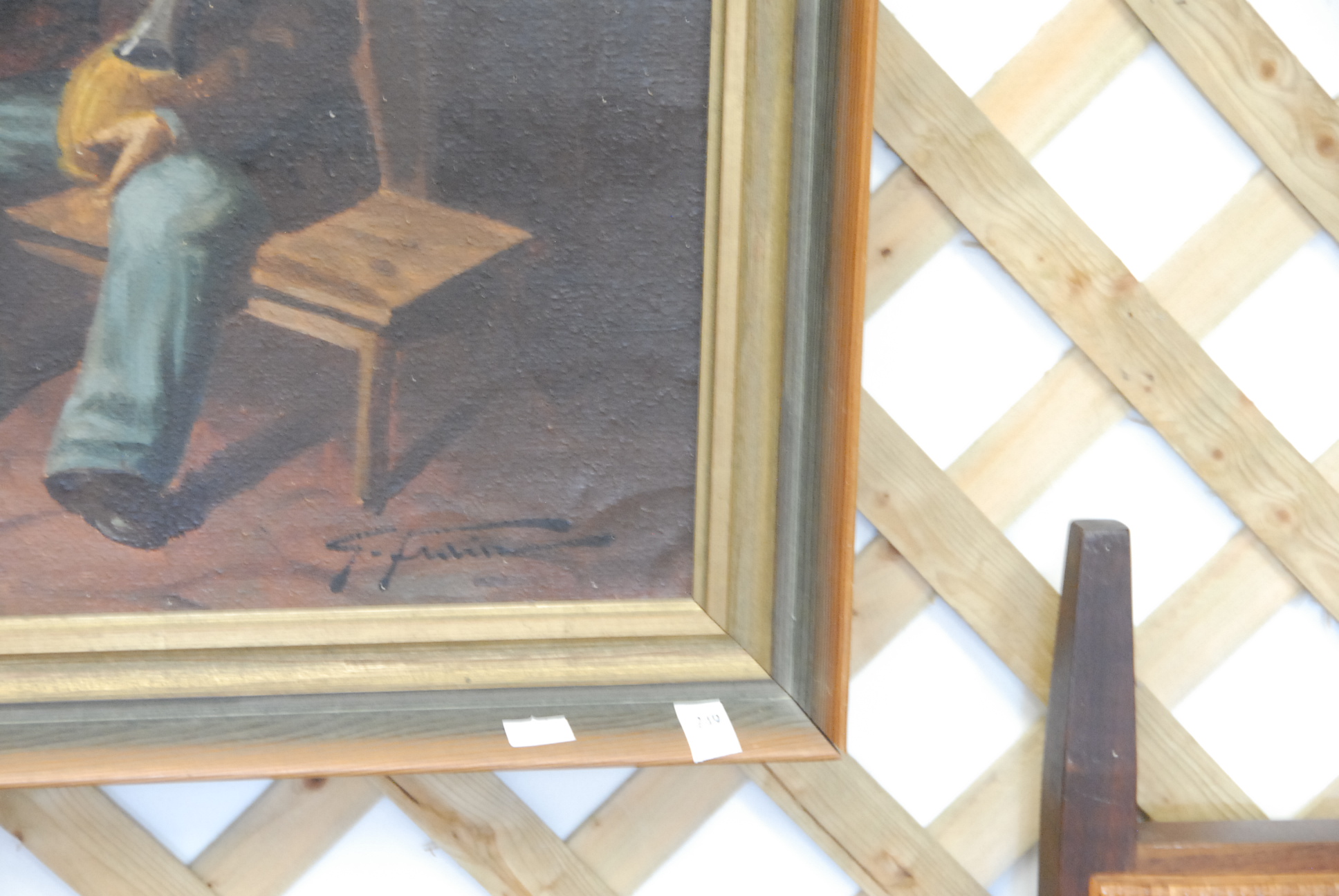 Lot 249: Oil on canvas of a man and a young child.