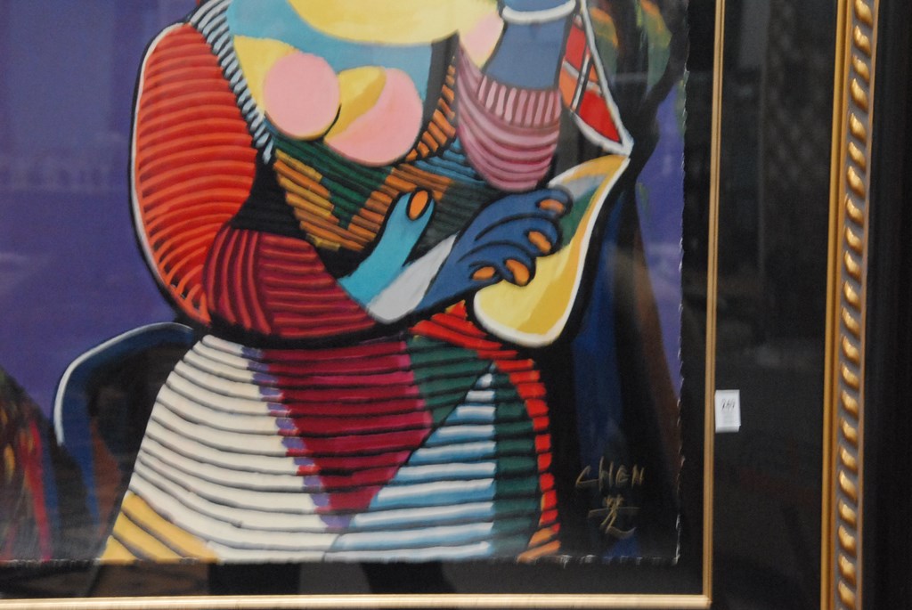 Lot 249: T. F. Chen 1938 serigraph Love Above Confrontation signed lower right Chen, #203/250, 30 x 40.