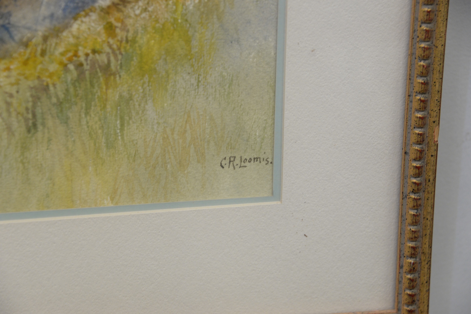 Three Charles Russell Loomis (American, 1857 – 1936), each watercolor on paper, each depicting coastal scenes with flying shore birds, each signed lower right “C.R. Loomis”, sight size of largest 10 1/4″ x 13 1/4″. Provenance: Estate of James Wadhams.