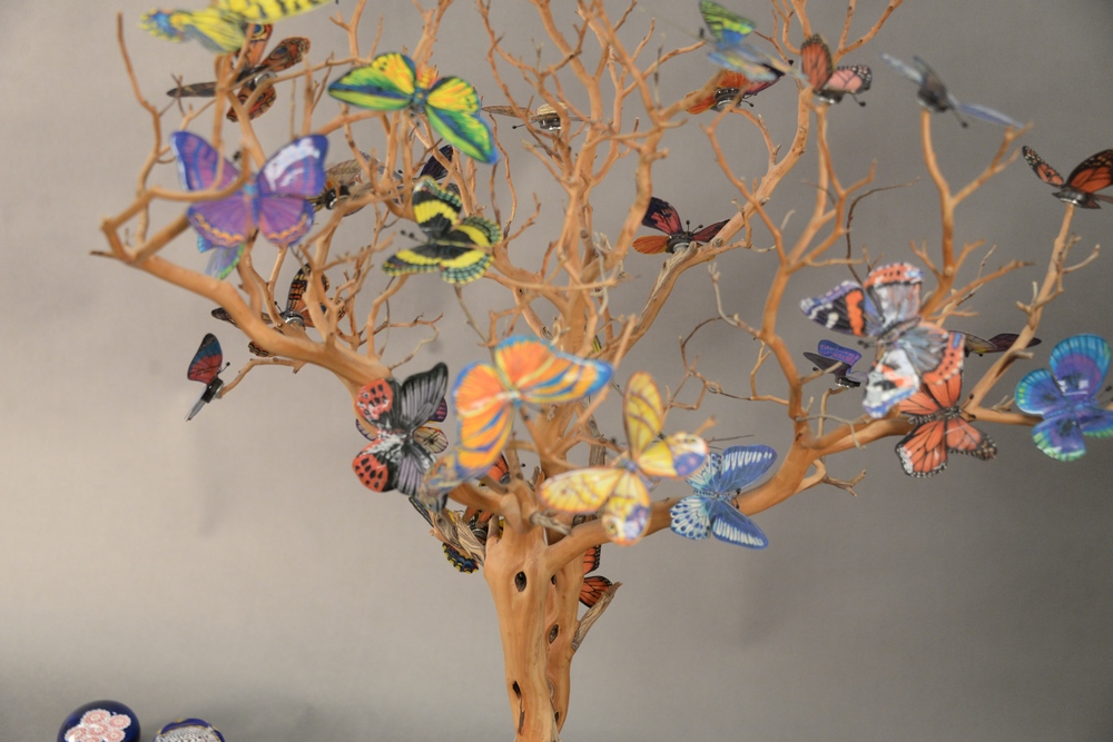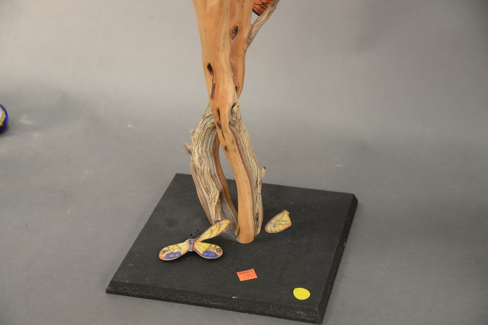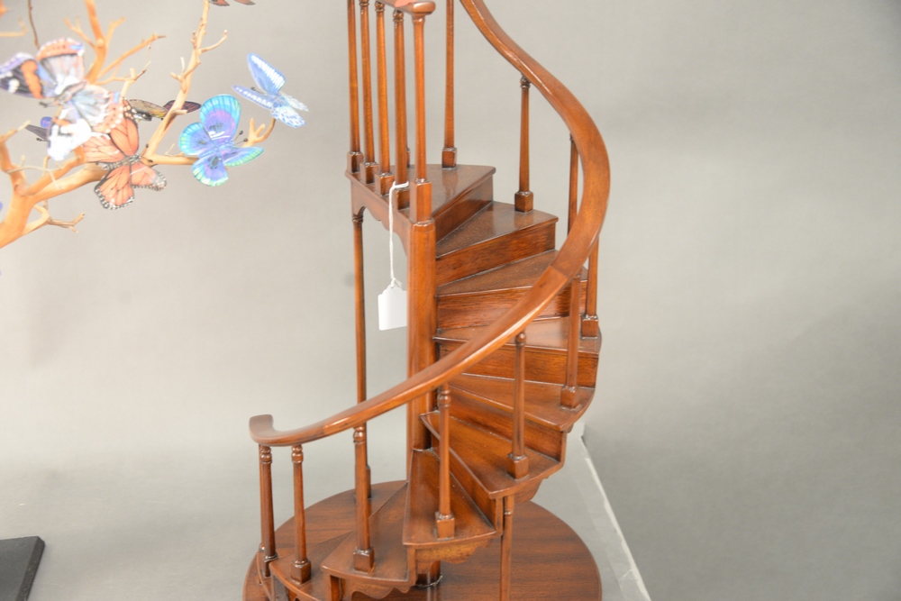 Lot 249: Two Piece Group, to include a Marcia Hawthorne by Running Studios magnetic butterfly tree, along with small wood spiral staircase, t…