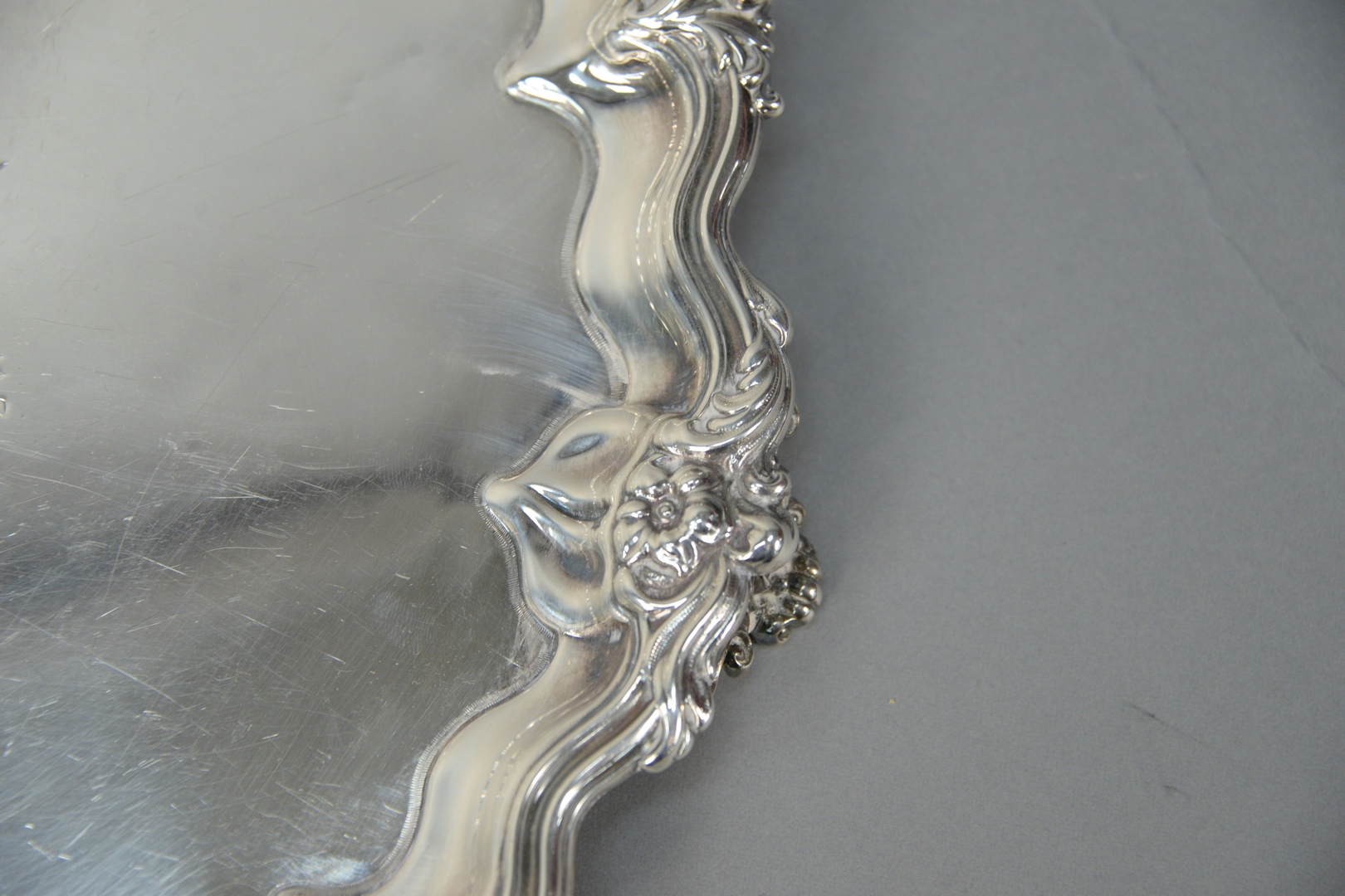 Lot 249: Walker & Hall English Silver Salver having wavy edge with flowers, set on scrolled feet, marked Walker & Hall, Sheffield, England on…
