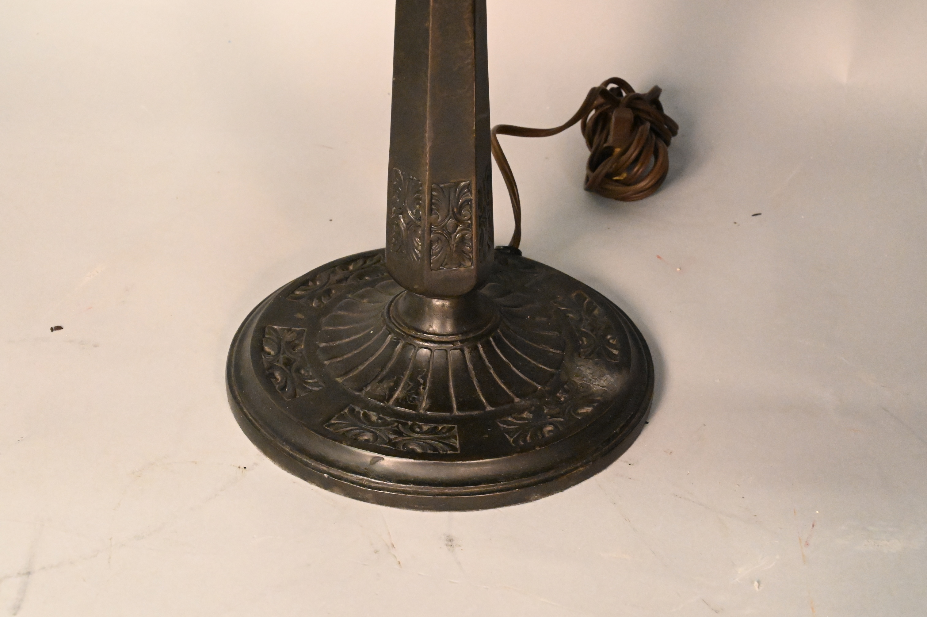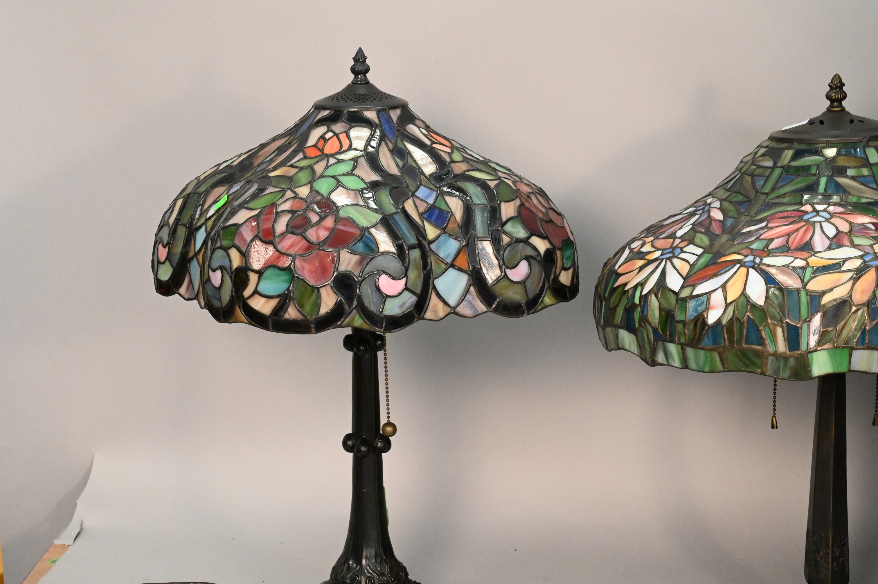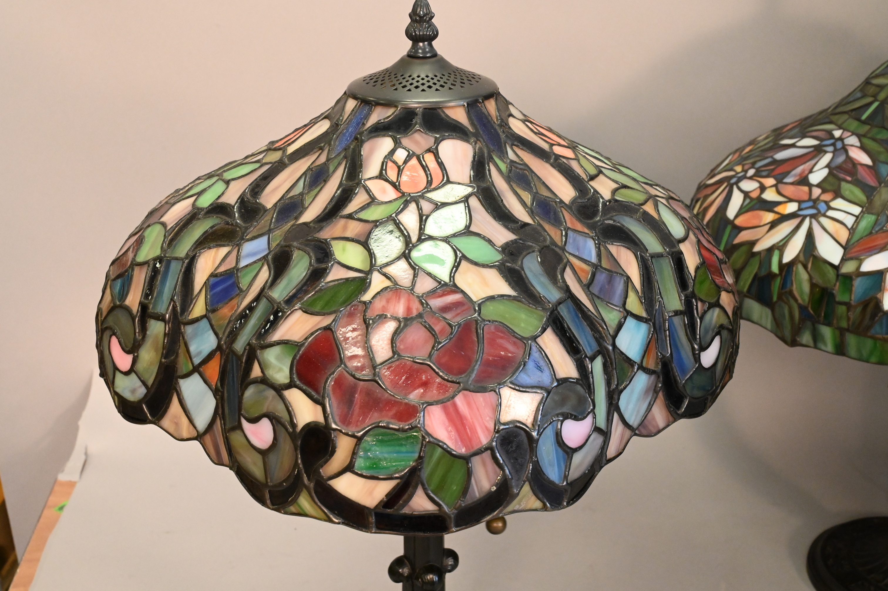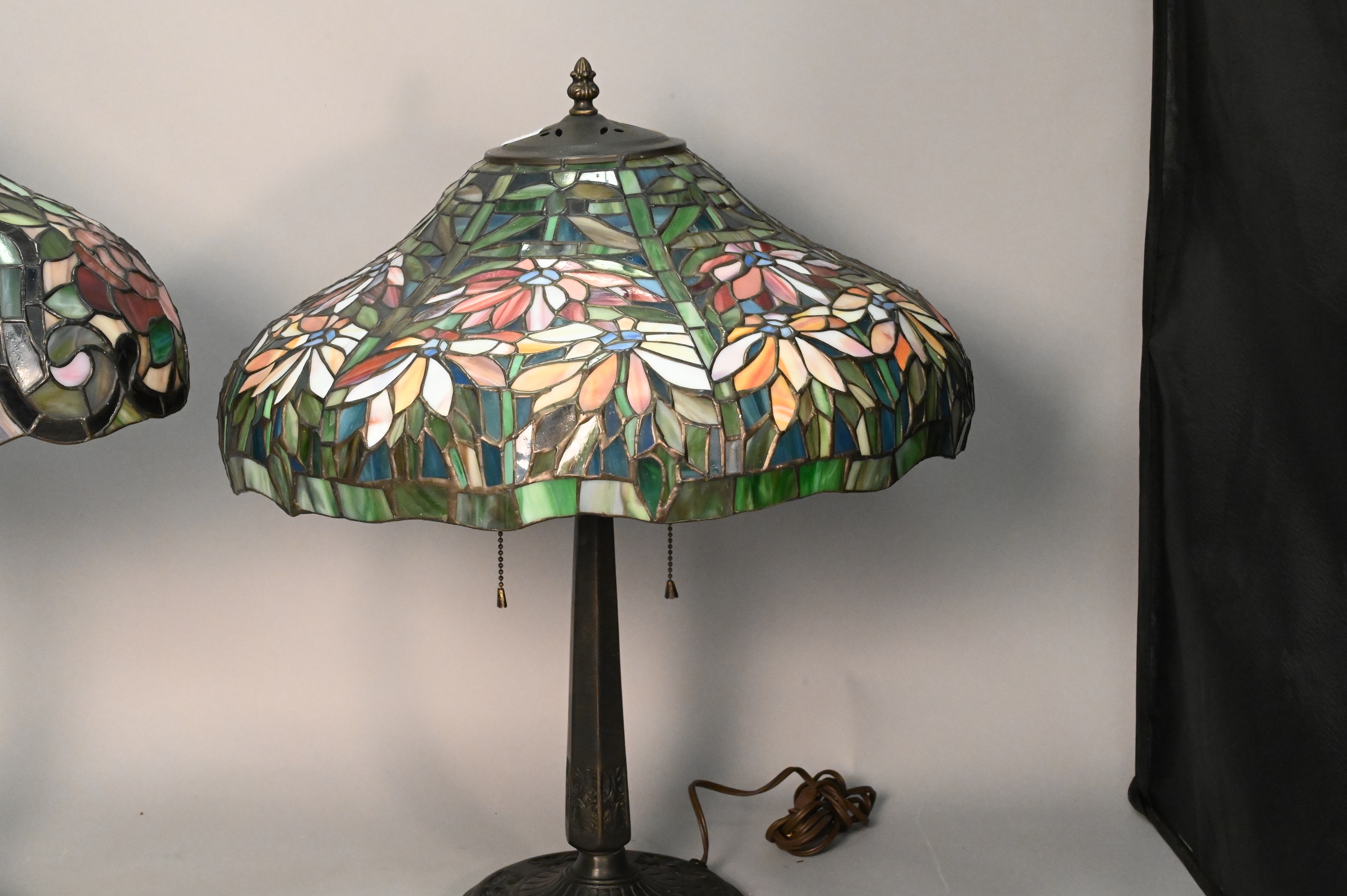 Two Slag Glass Table Lamps of Floral Design, tallest is 24 inches