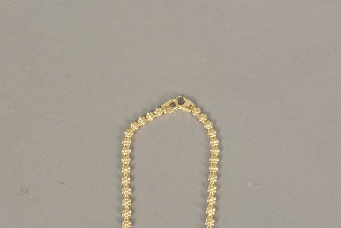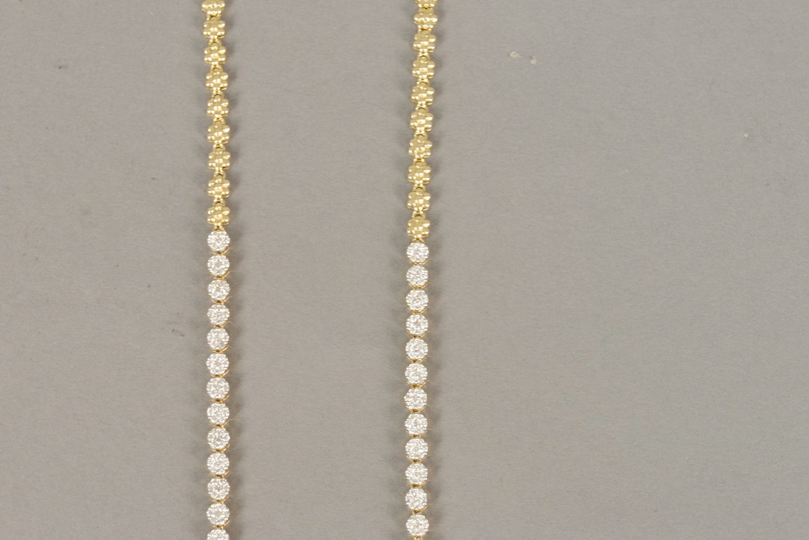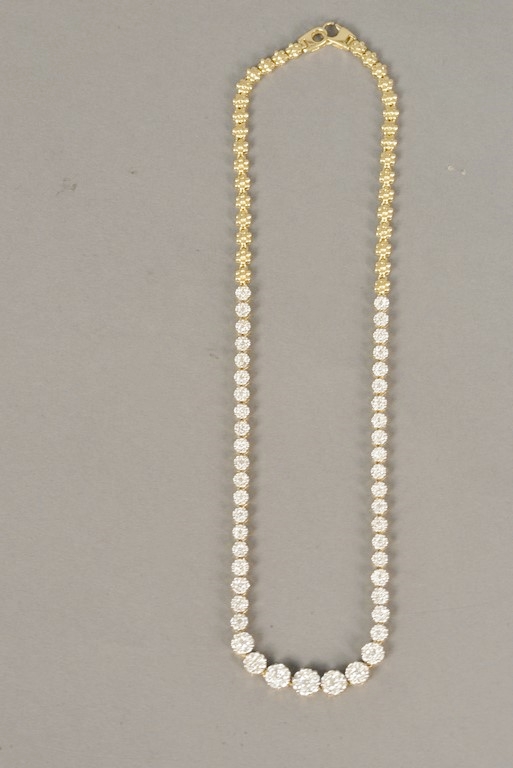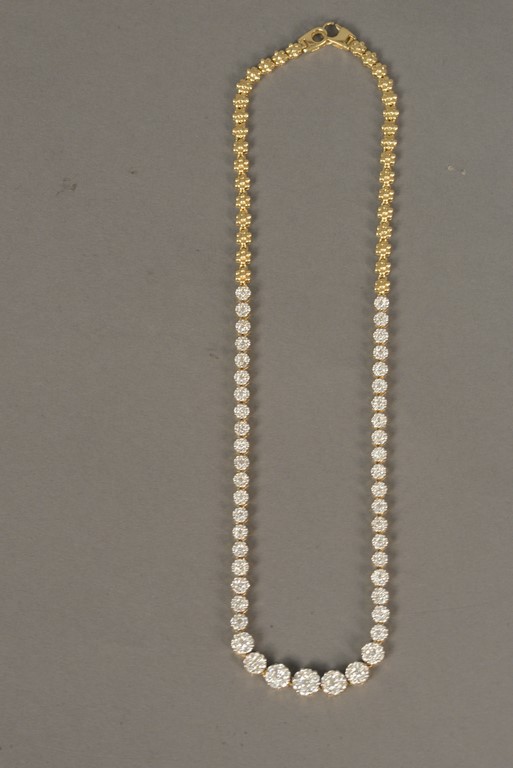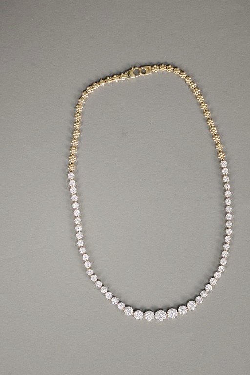 Lot 25: 14K gold and diamond necklace with forty-seven round sections each set with seven round cut diamonds, total 329 diamonds. 28 gram…