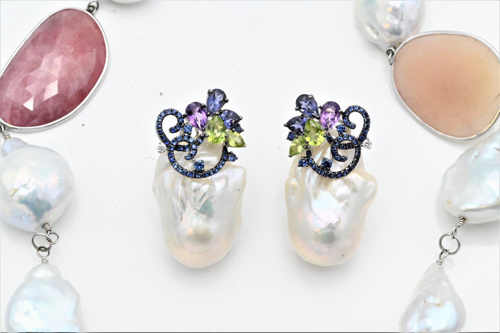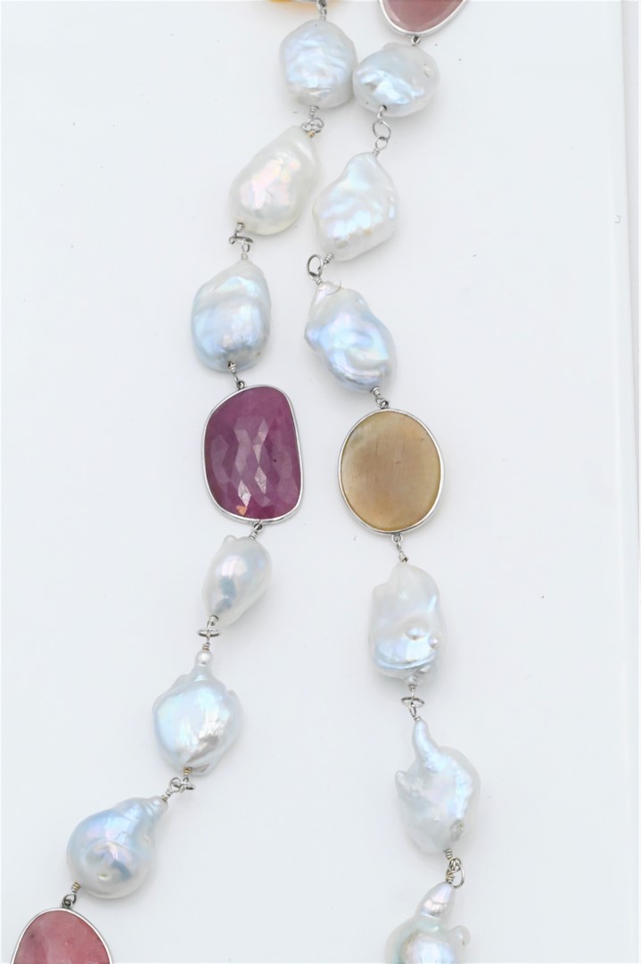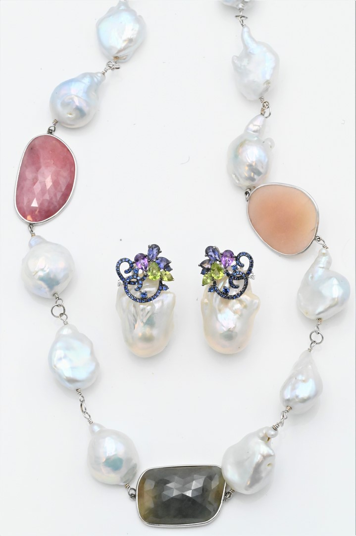 to include a 18 karat white gold necklace mounted with large freshwater pearls and stones