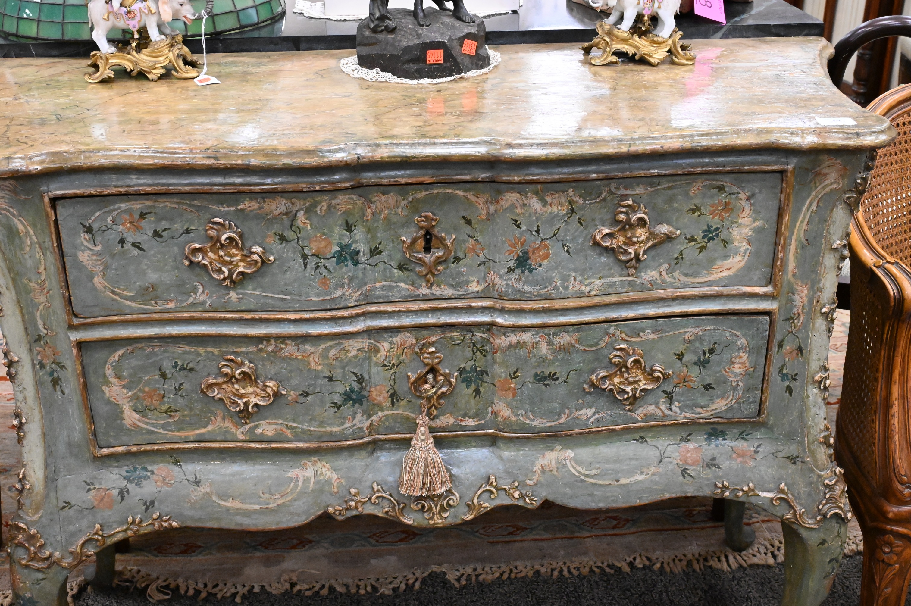 Lot 25: Italian Rococo Polychrome-Painted Commode with Faux Marble Top
