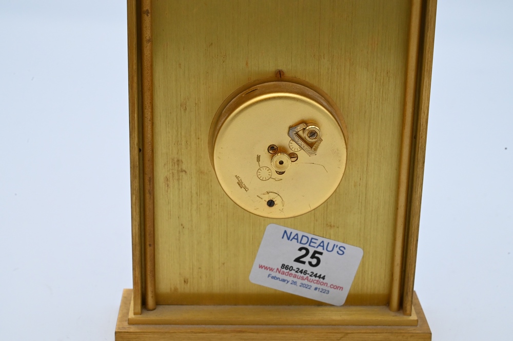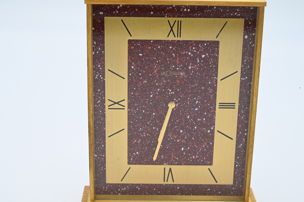 Lot 25: Jaeger Lecoultre Atmos Desk Clock, finished in brass trim, face and movement, height 5 5/8 inches.