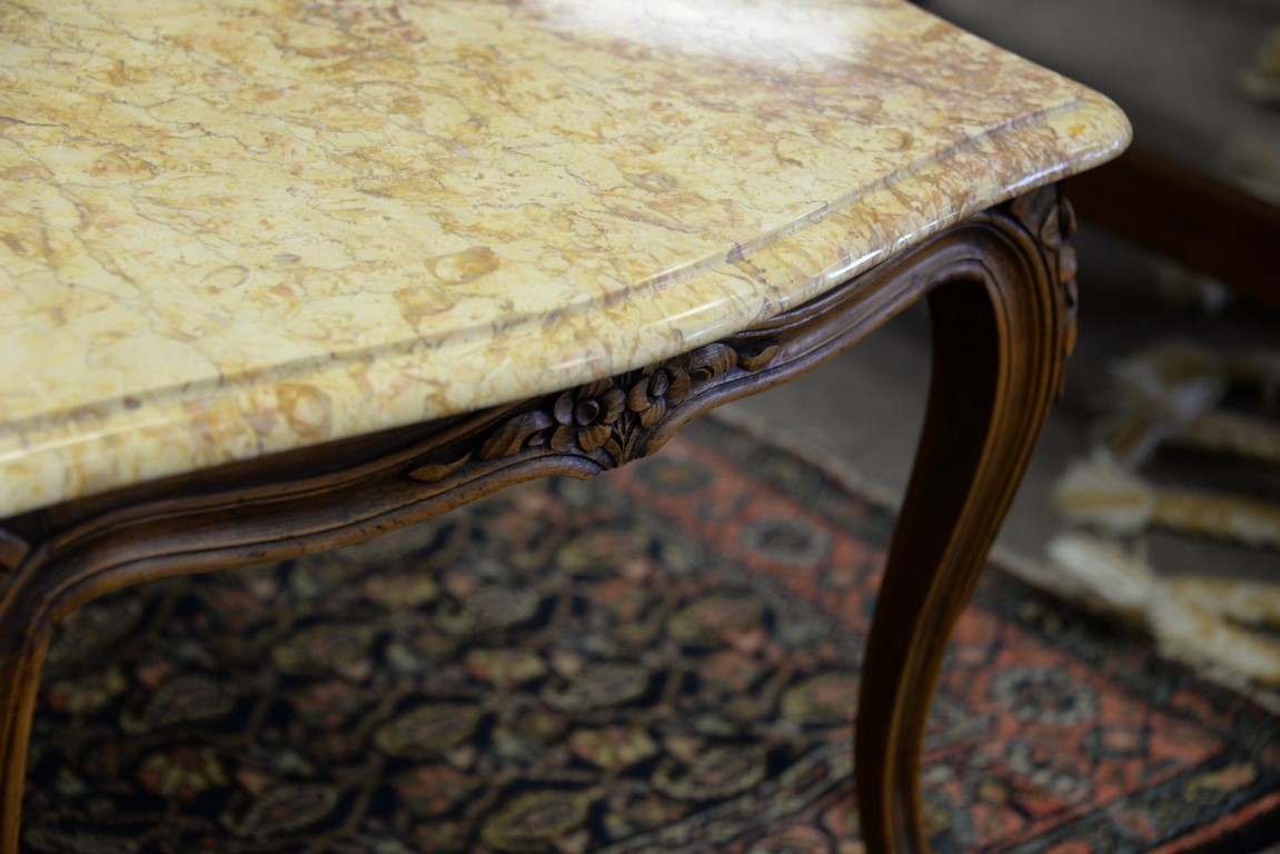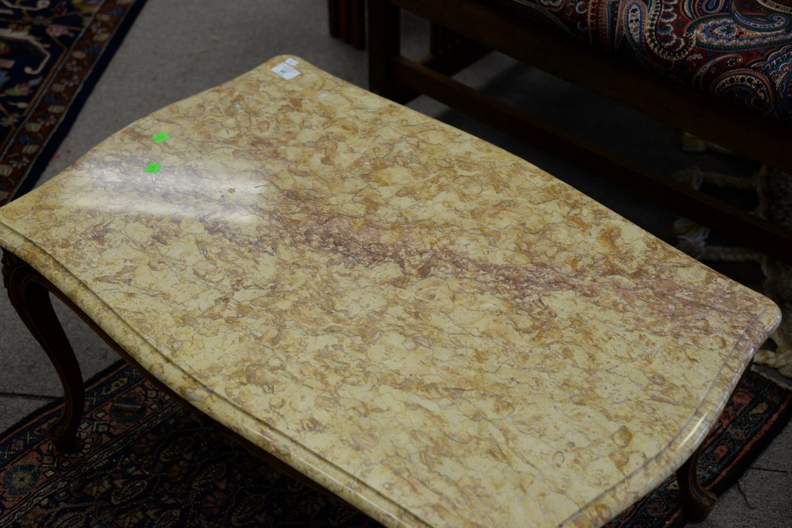 Louis XV style marble top coffee table. ht. 17 in. top: 21 x 35