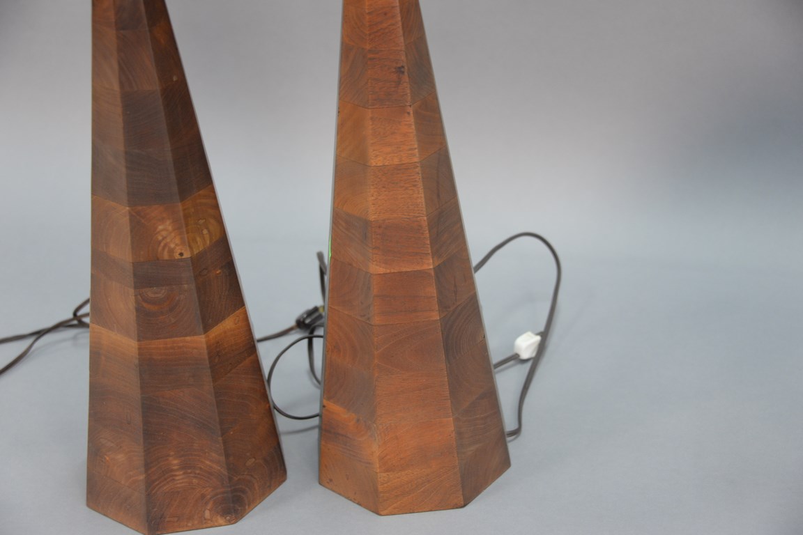 Pair of Mid-Century wooden lamps, ht. 33 in.