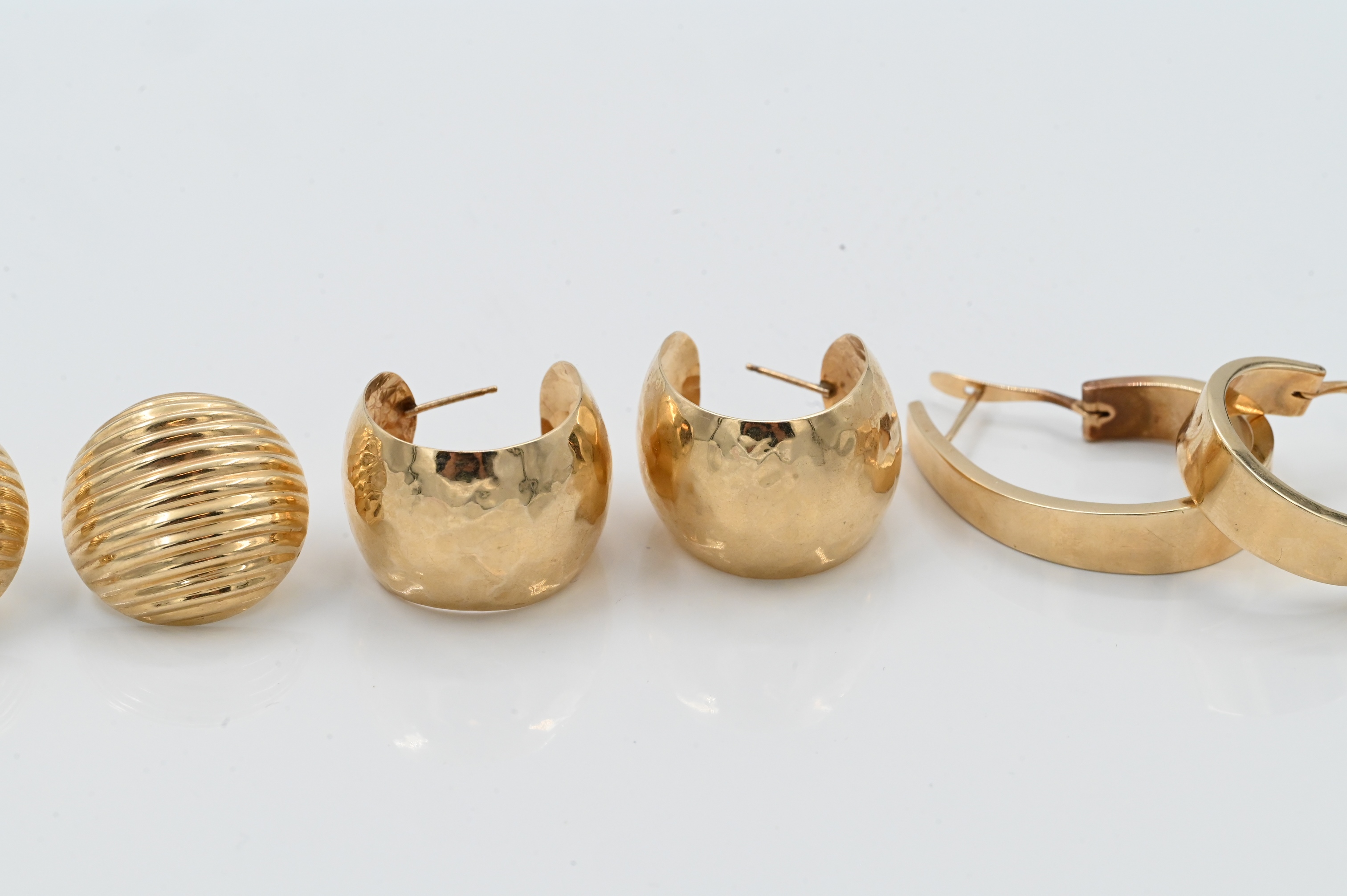 Lot 25: Six Pairs of 14K Yellow Gold Earrings