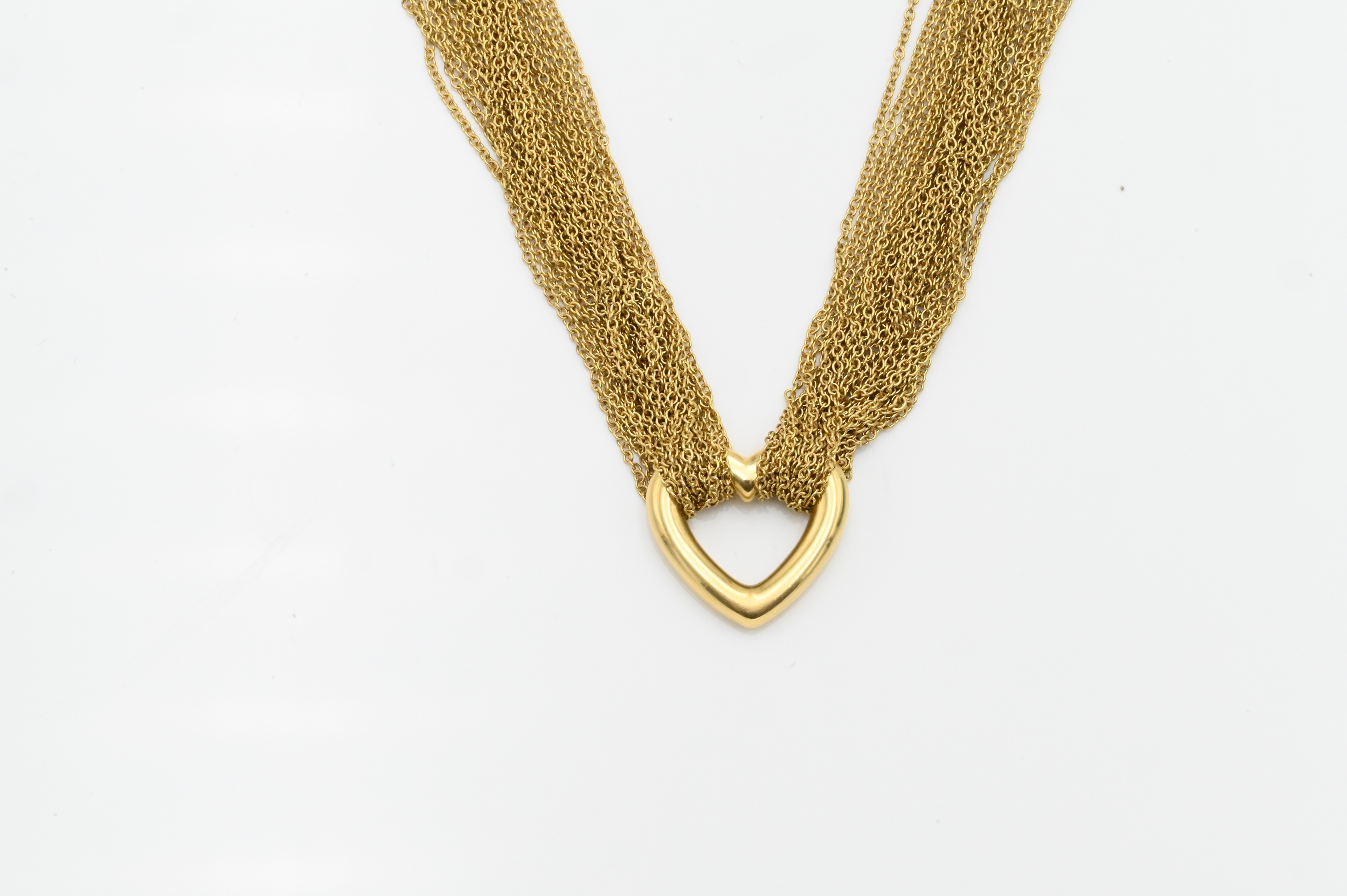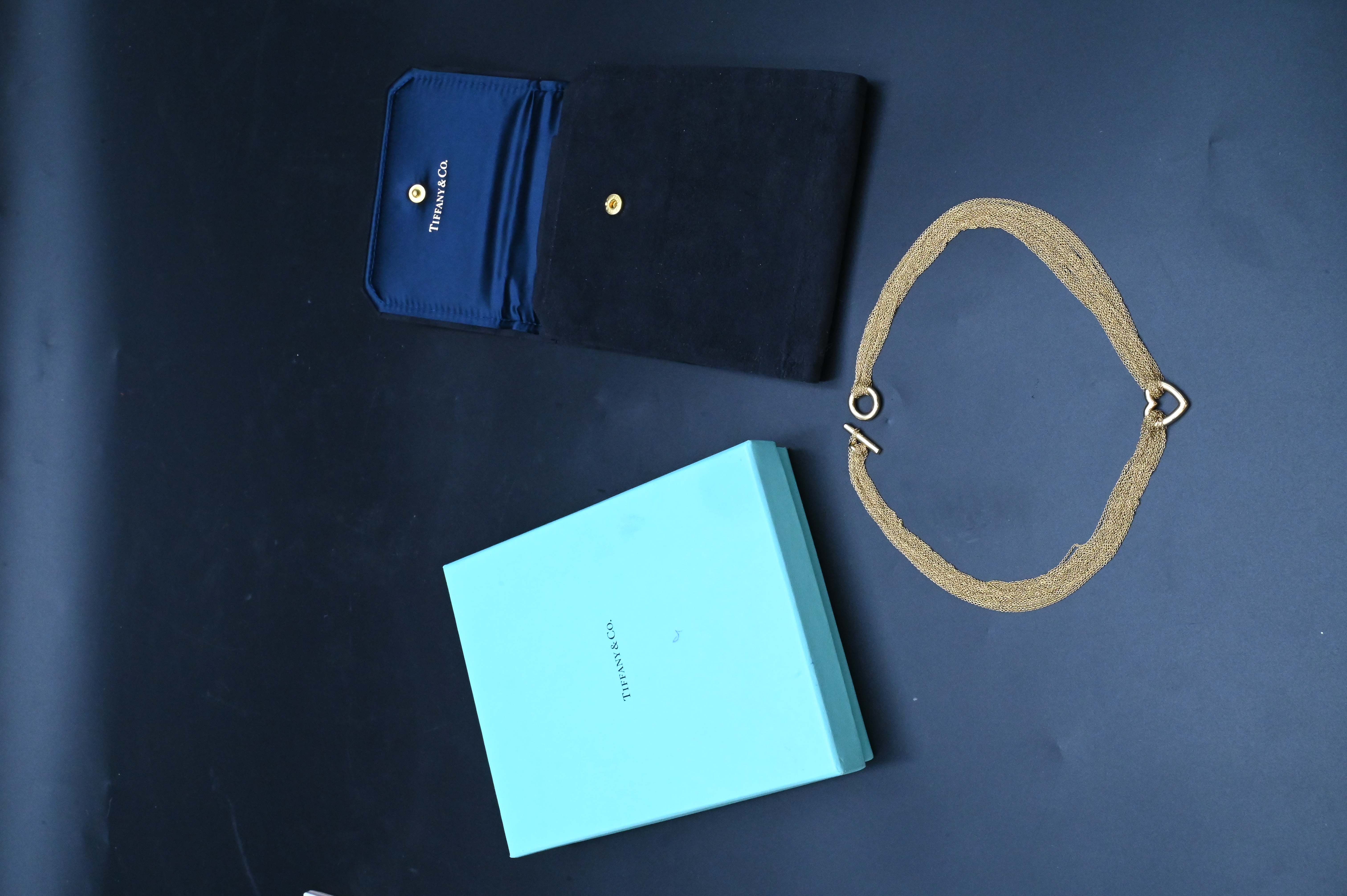 Lot 25: Tiffany and Company 18K Yellow Gold Multi Strand Mesh Heart Toggle Necklace
