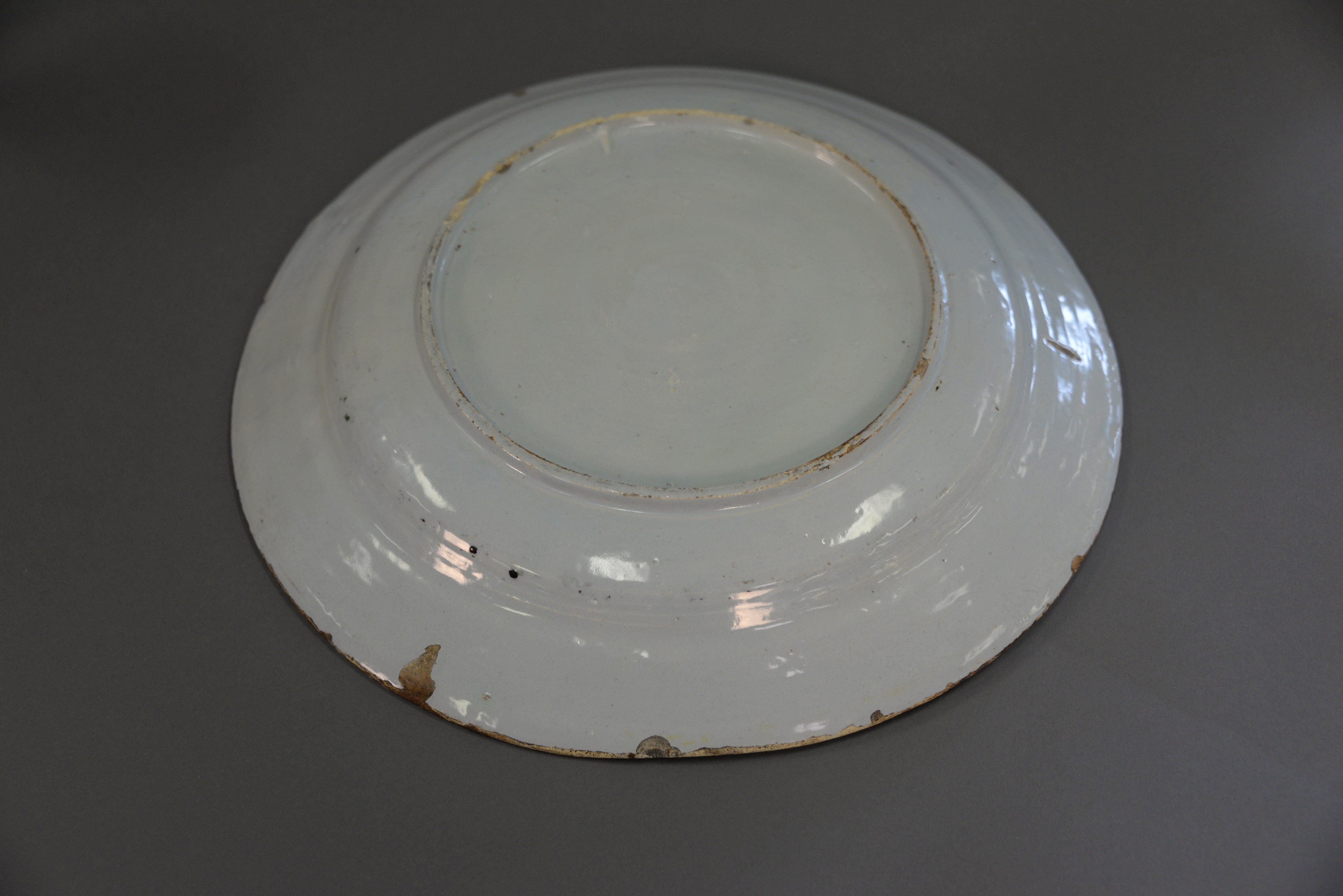 Tin glazed deep charger, probably 18th – 19th century. dia. 13 3/4 in.