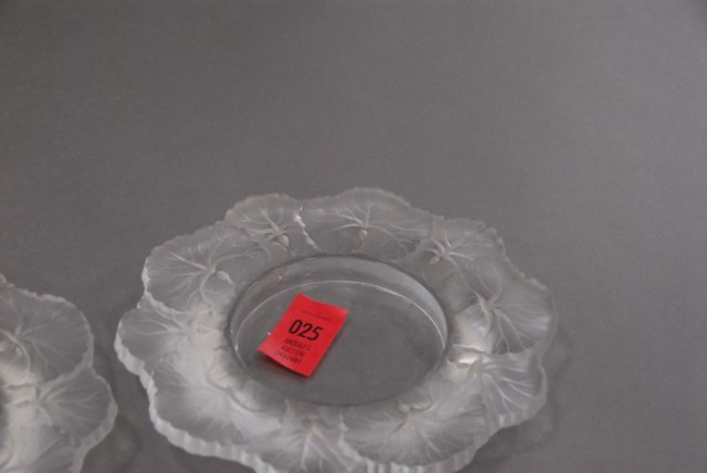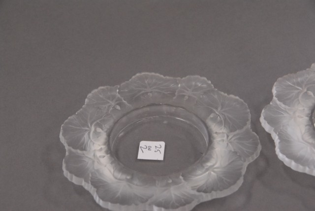 Two crystal coasters with frosted edges, signed Lalique, France.