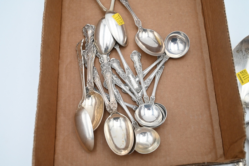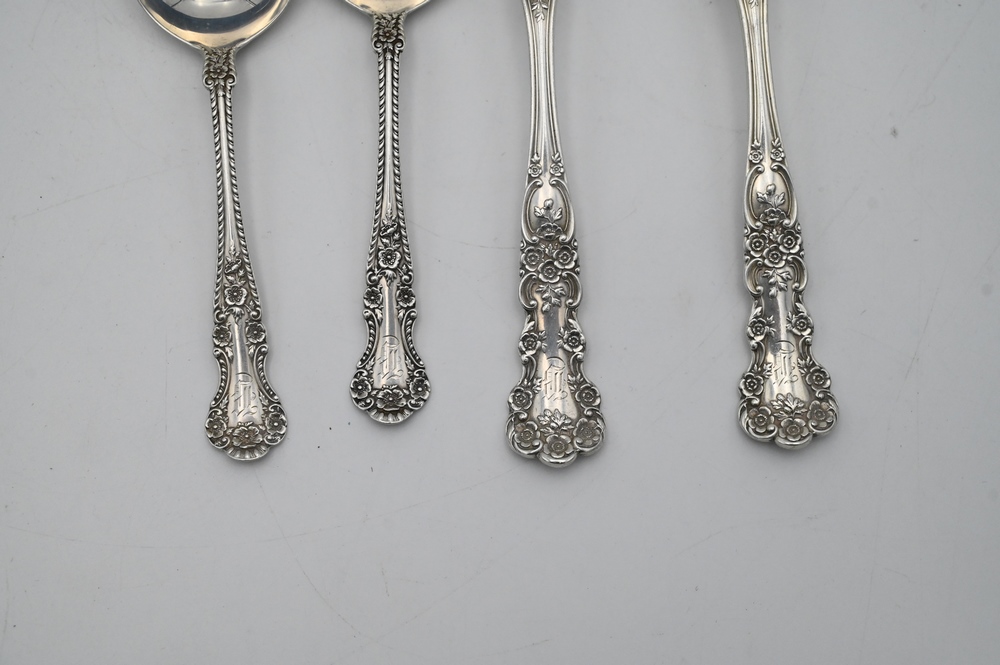 Lot 250: 24 Piece Gorham Sterling Silver Flatware Set, Cambridge pattern, to include 12 tablespoons; 11 bouillon spoons; along with 1 server;…