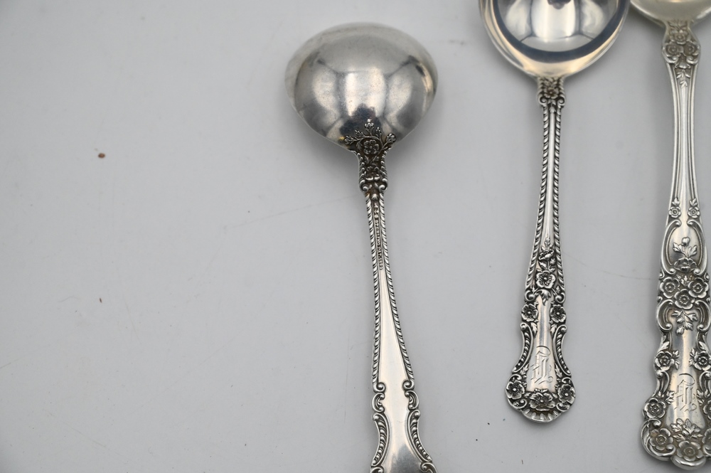24 Piece Gorham Sterling Silver Flatware Set, Cambridge pattern, to include 12 tablespoons; 11 bouillon spoons; along with 1 server; longest 8 3/4 inches, 28.915 t.oz.