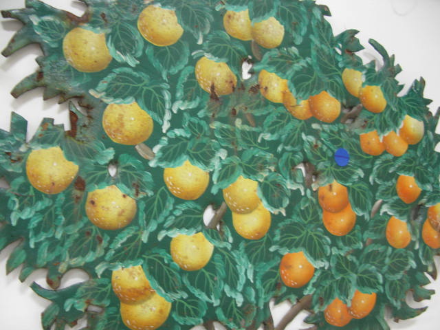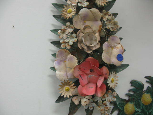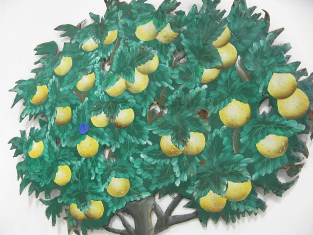 6 piece lot, two pairs of metal wall sconces and two metal wall hangings in the shape of trees