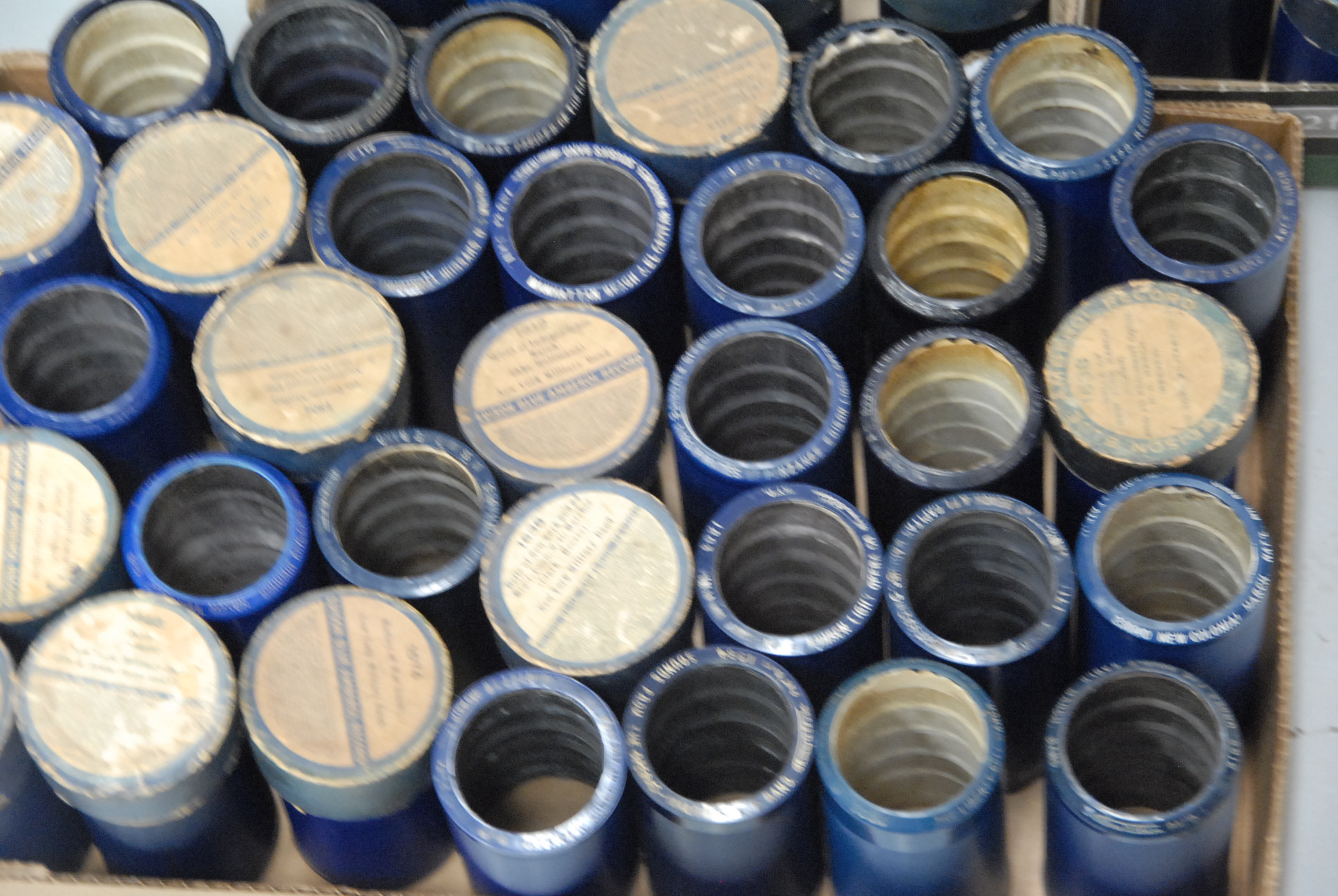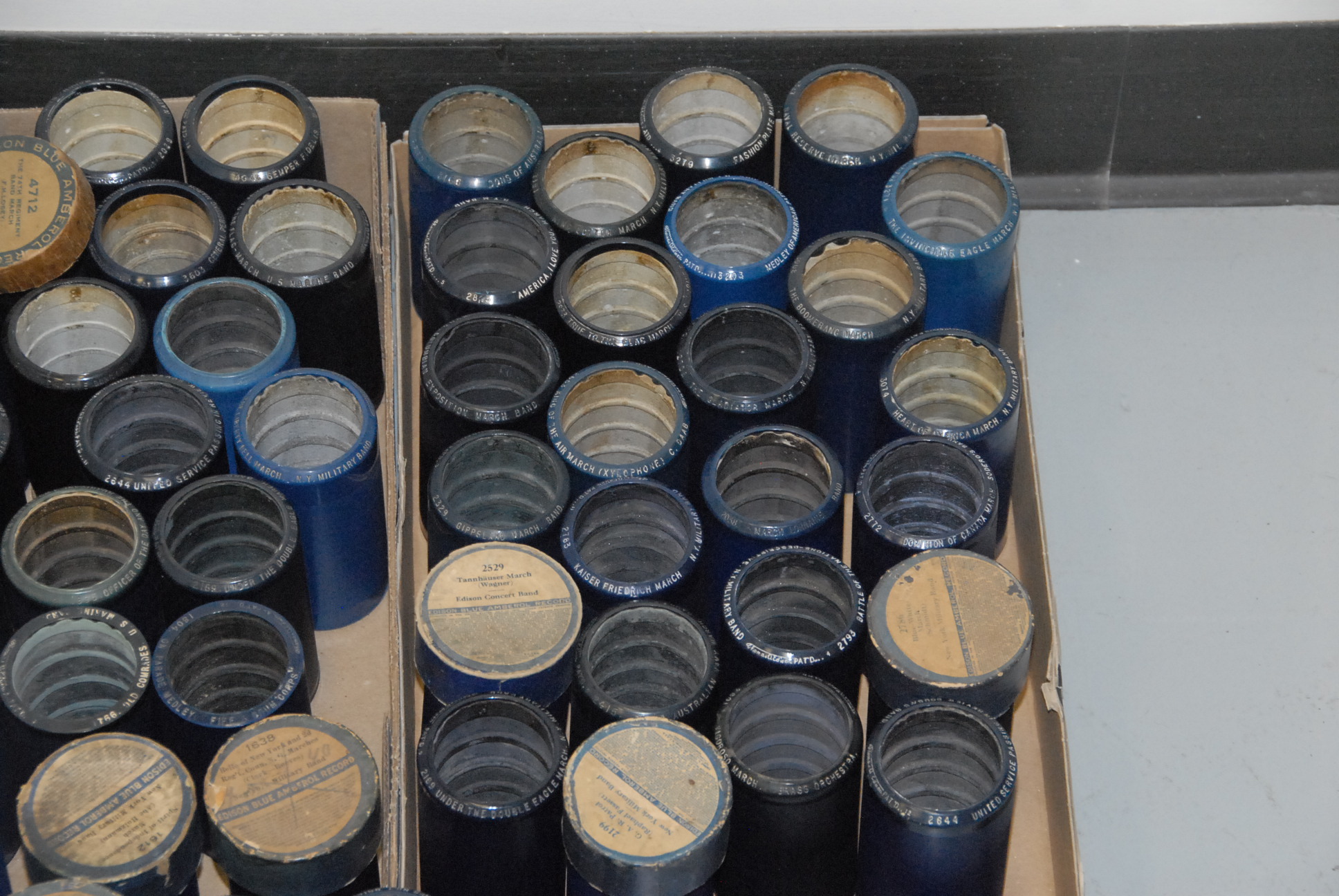 Approximately 100 Edison Blue Amberol records.