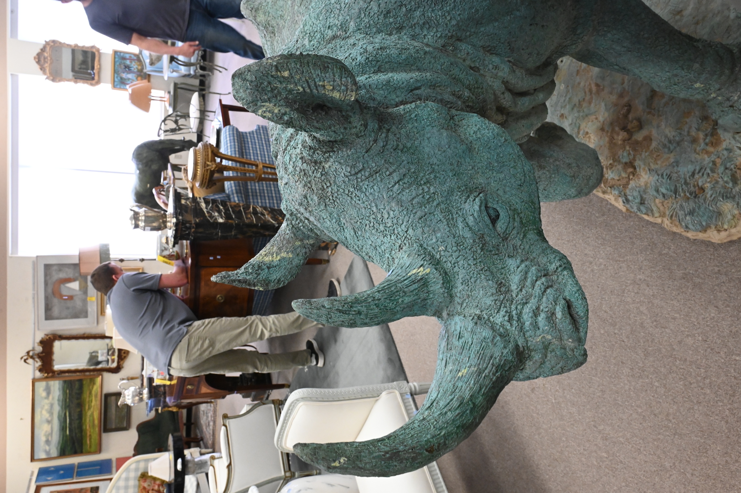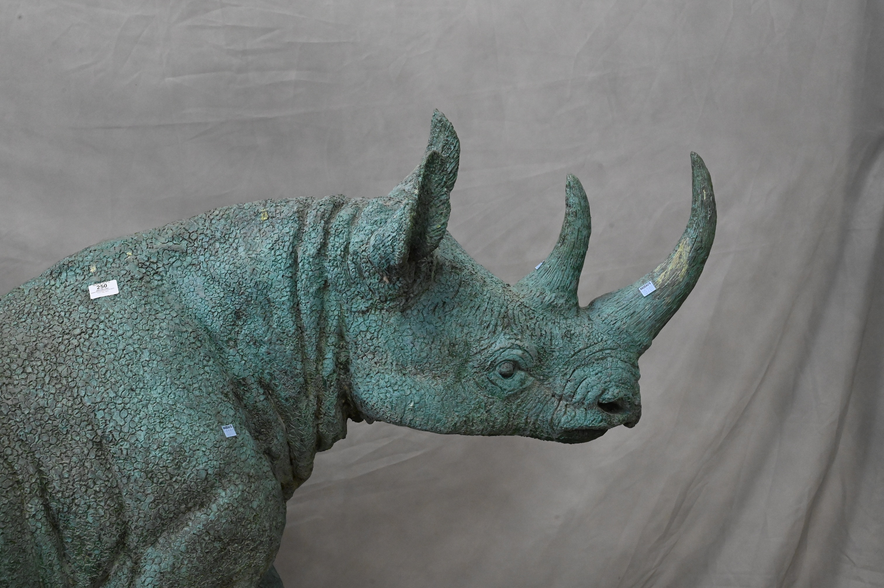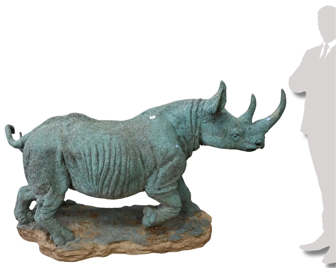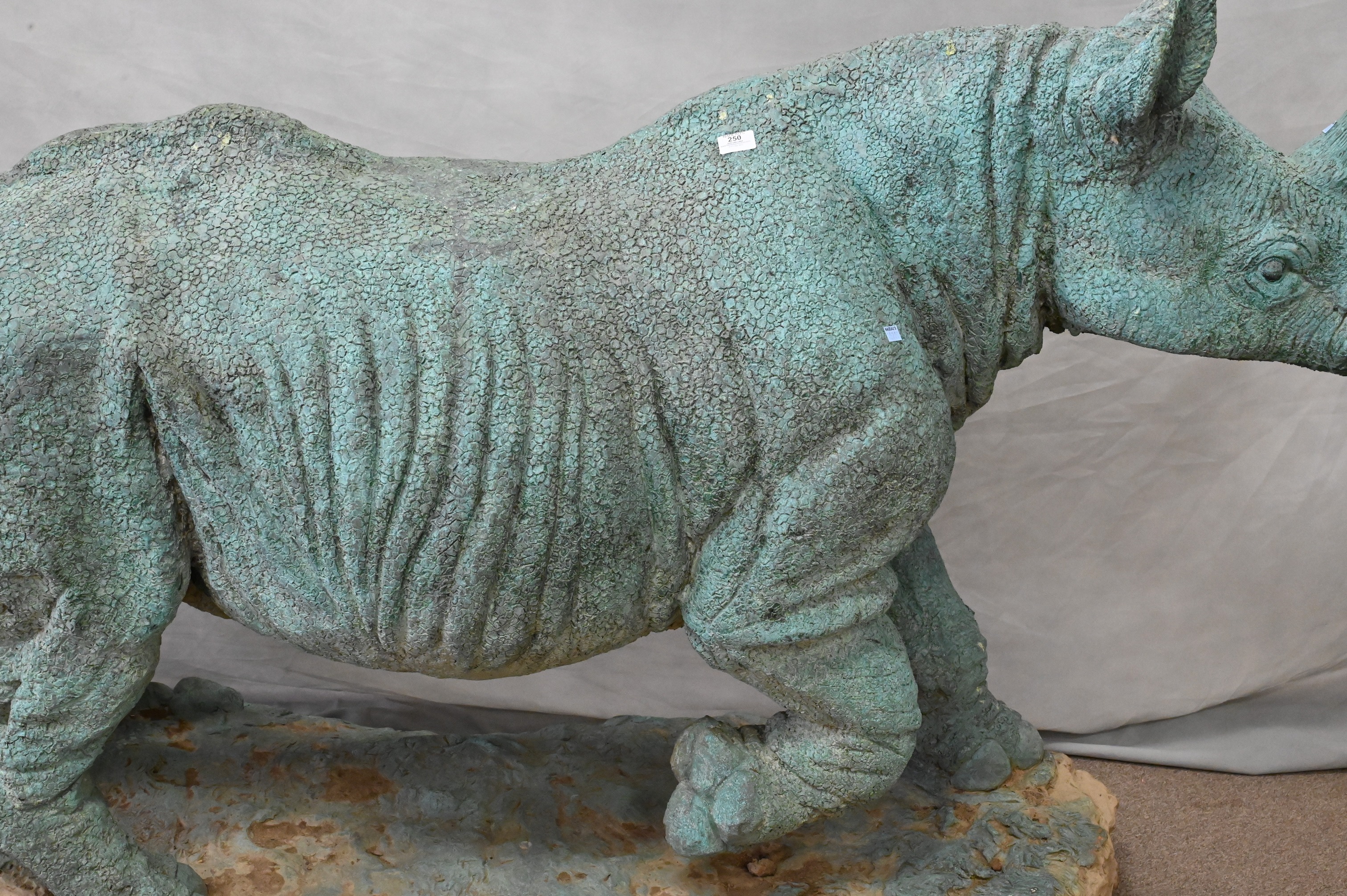 Lot 250: Cast Bronze Sculpture of Rhinoceros on Realistic Ground Base