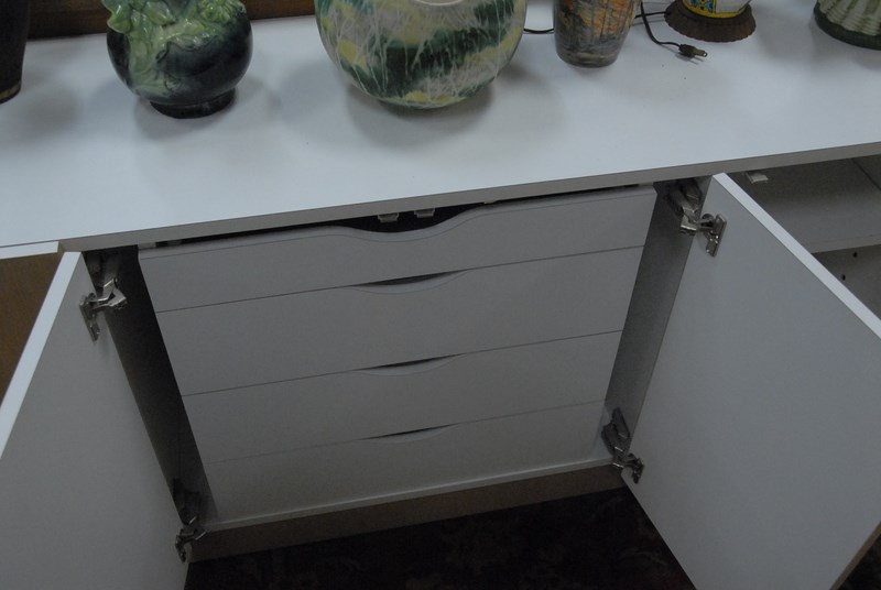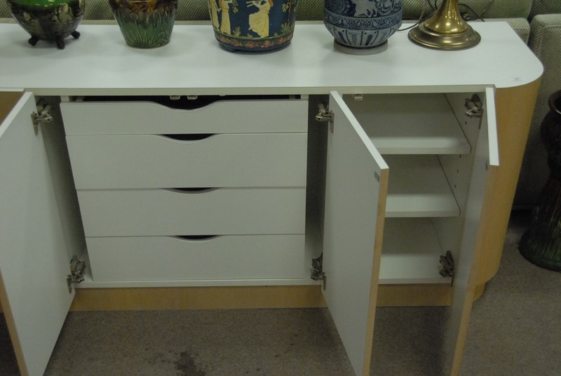Contemporary custom server with fitted drawered interior, ht. 29in. lg. 72in.