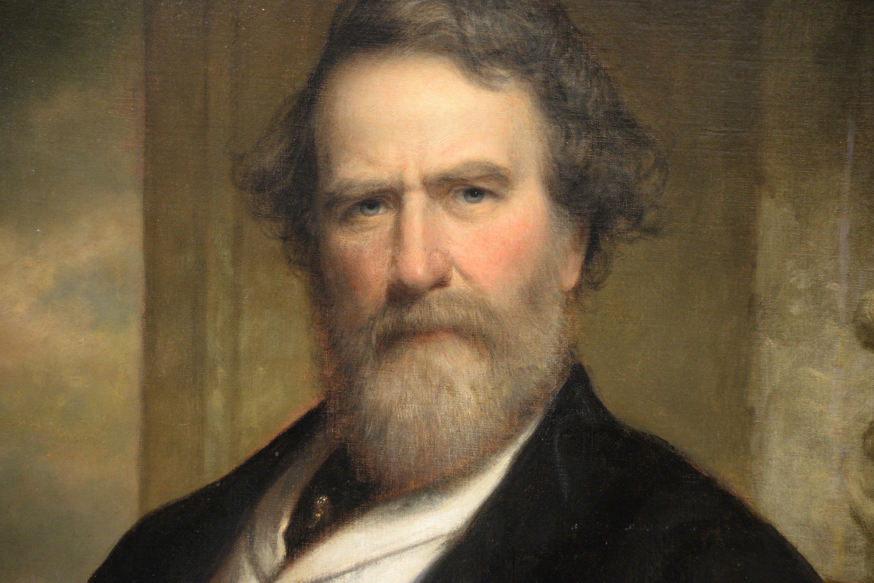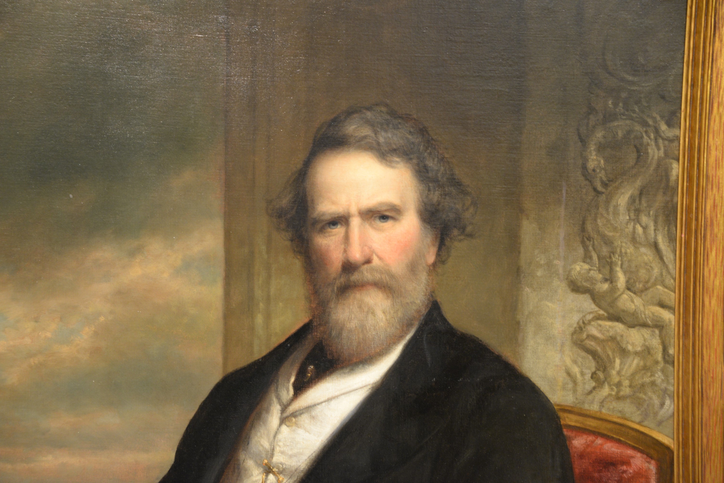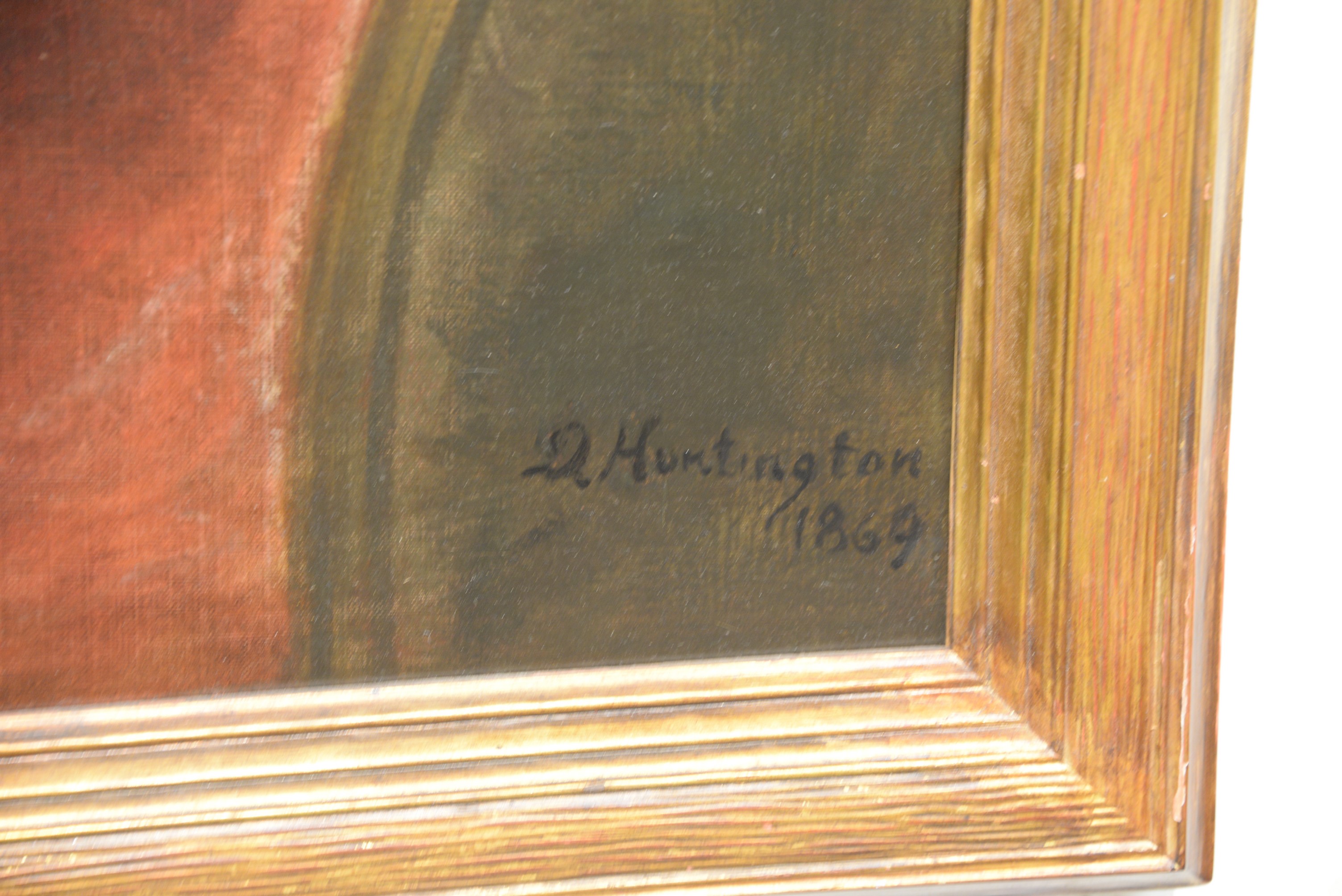 Daniel Huntington 1816-1906 Portrait of Richard Lathers 1820-1903 seated by a window overlooking rocky seashore with a ship off the coast oil on canvas, painted from life in 1869 signed lower left: D. Huntington plaque: Richard Lathers, presented by the officers and clerks of the Great Western Marine Insurance Company 1869, painted by D. Huntington 50 x 40 American frame, circa 1910, frame wd. 3 in. restretched and relined Provenance: The Chamber of Commerce of the State of New York Donaldson, Lufkin & Jenrette, New York Property from Credit Suisse’s Americana Collection Literature: Chamber of Commerce of the State of New York, Catalogue of Portraits in the Chamber of Commerce of the State of New York New York, 1924 p. 51, no. 161.
