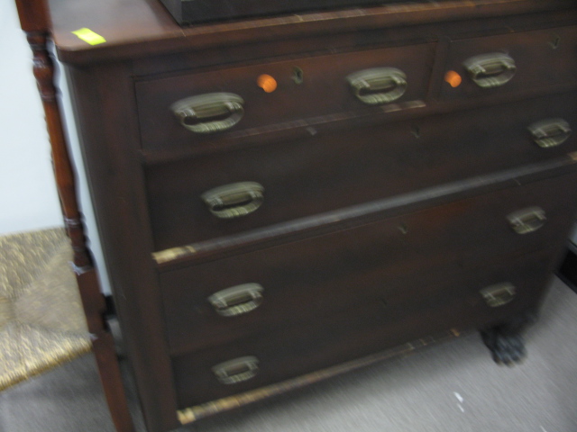 Empire mahogany chest 2 over 3 drawer with paw feet and mirror.