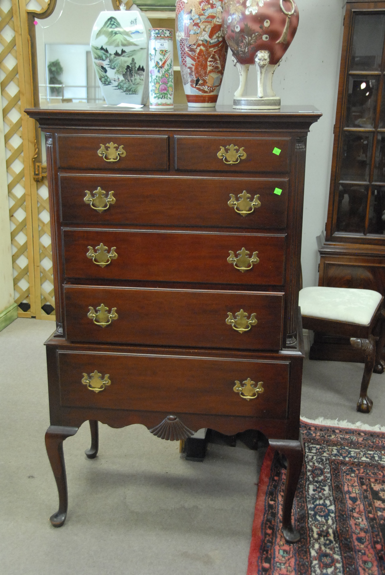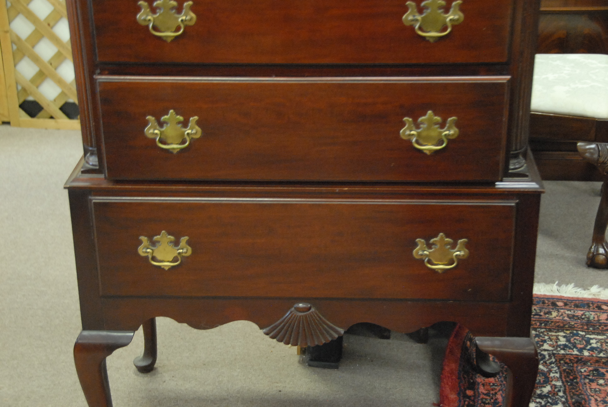 Kindel mahogany flat top highboy, ht. 58in. wd. 35in.