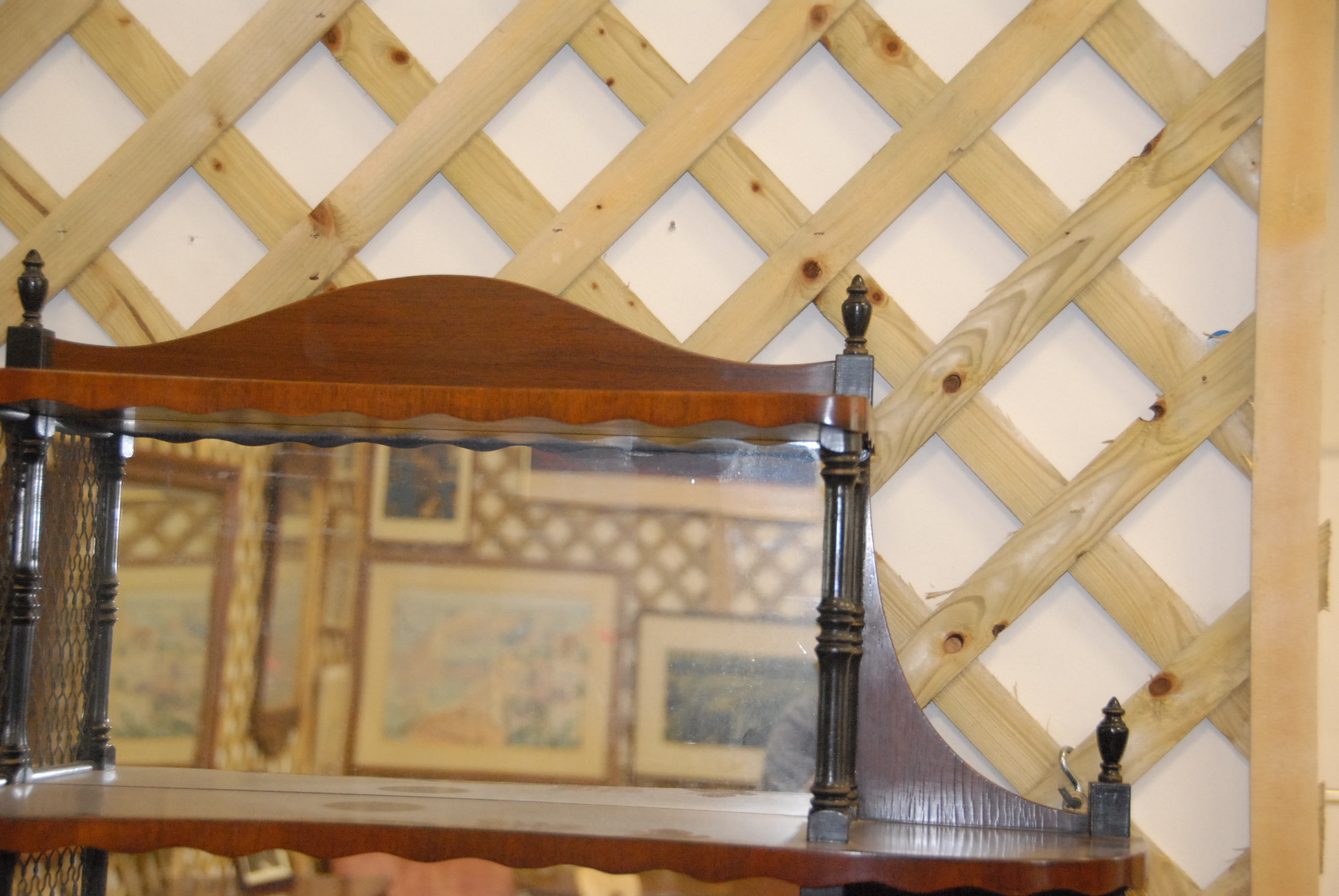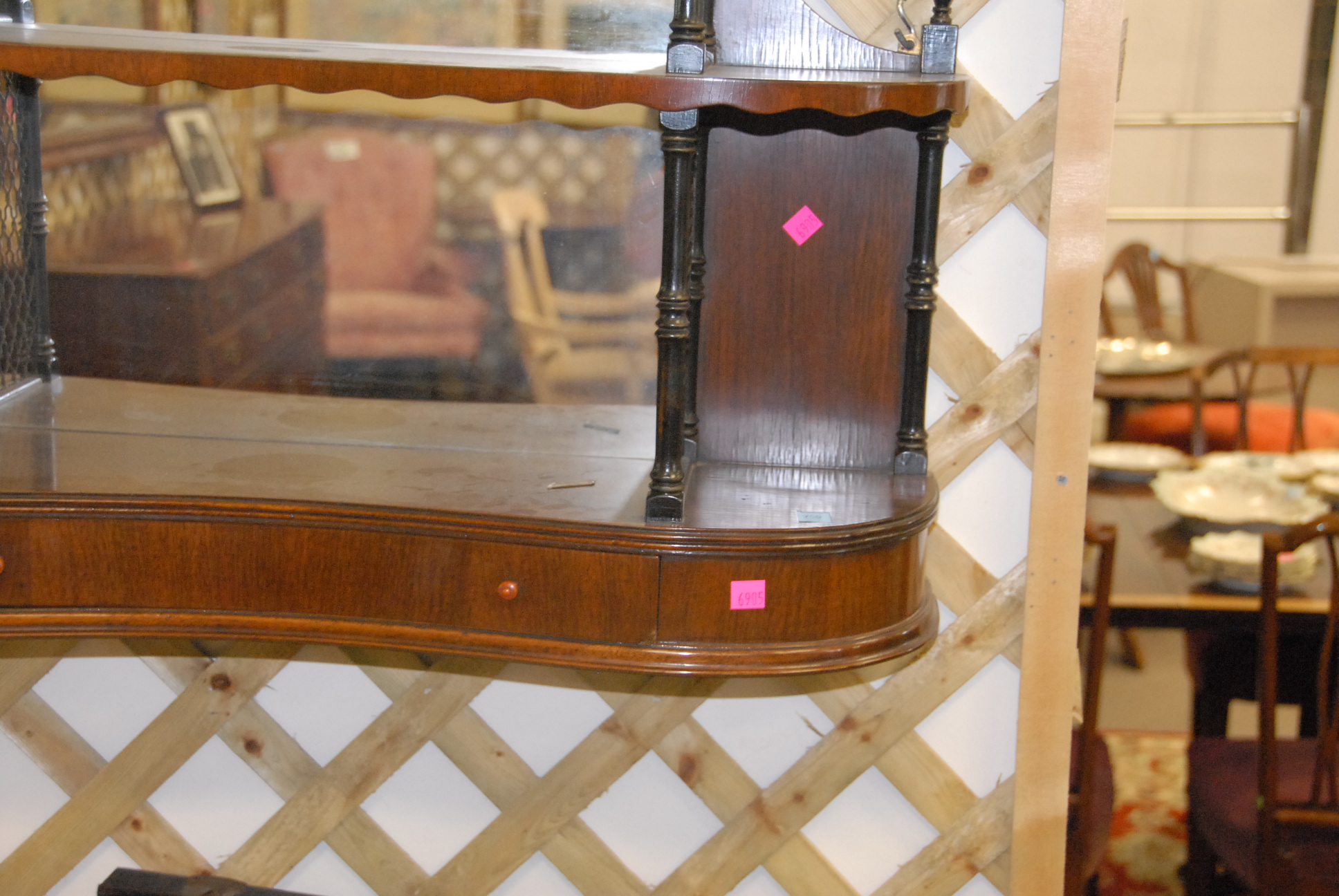 Lot 250: Mahogany mirrored hanging shelf with drawer.