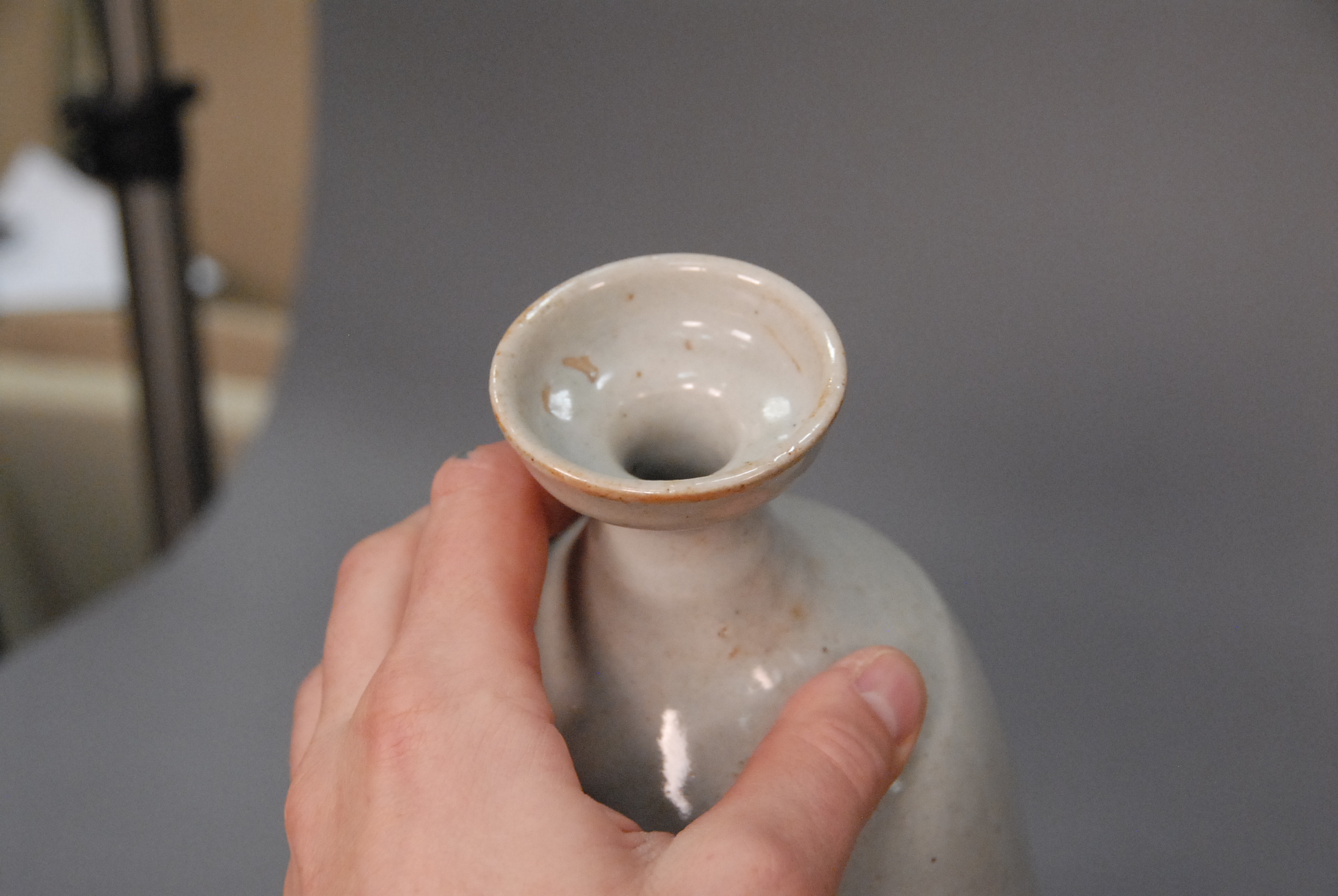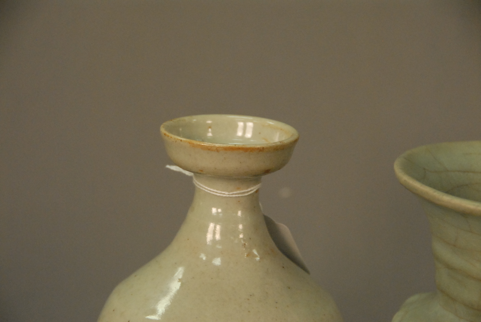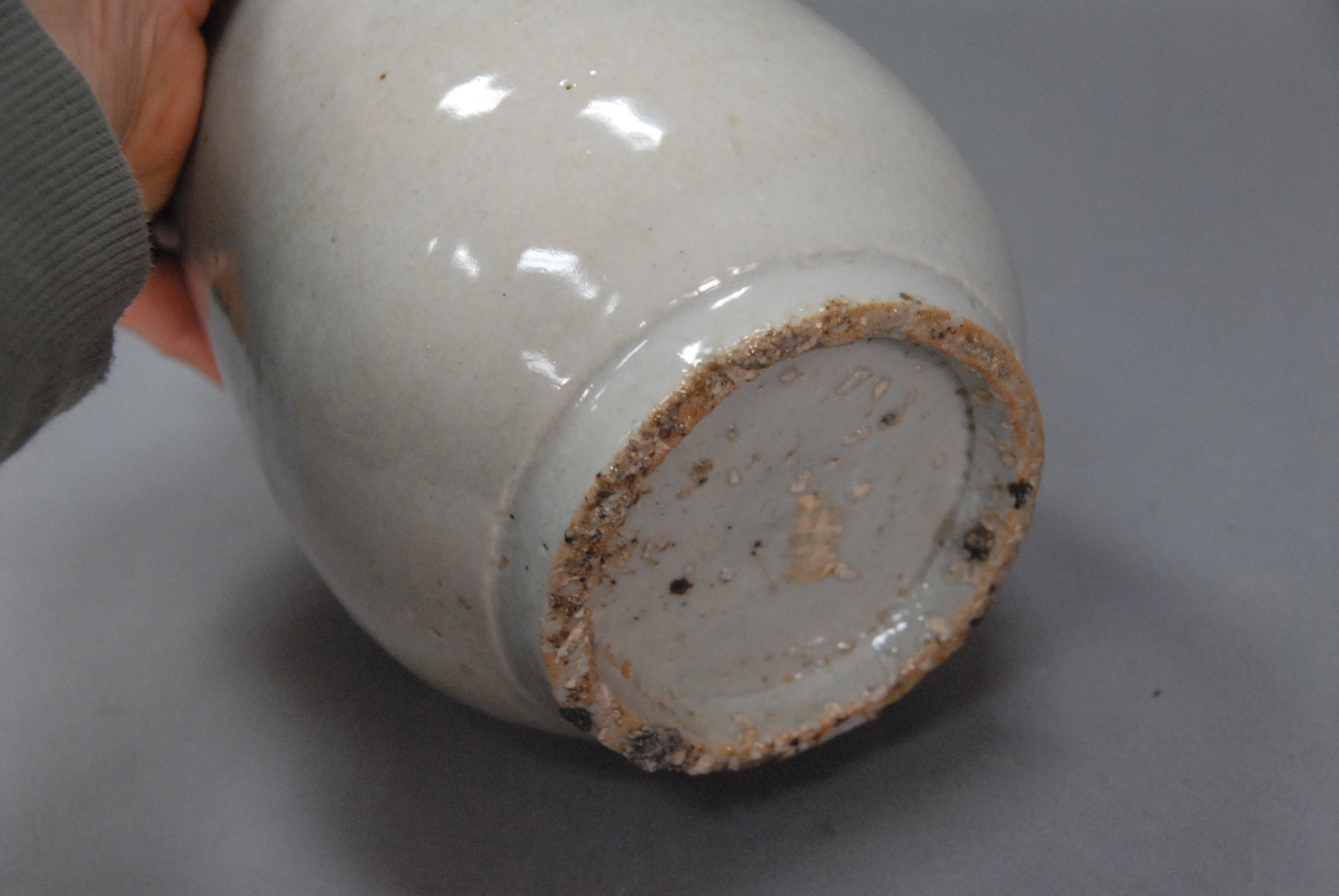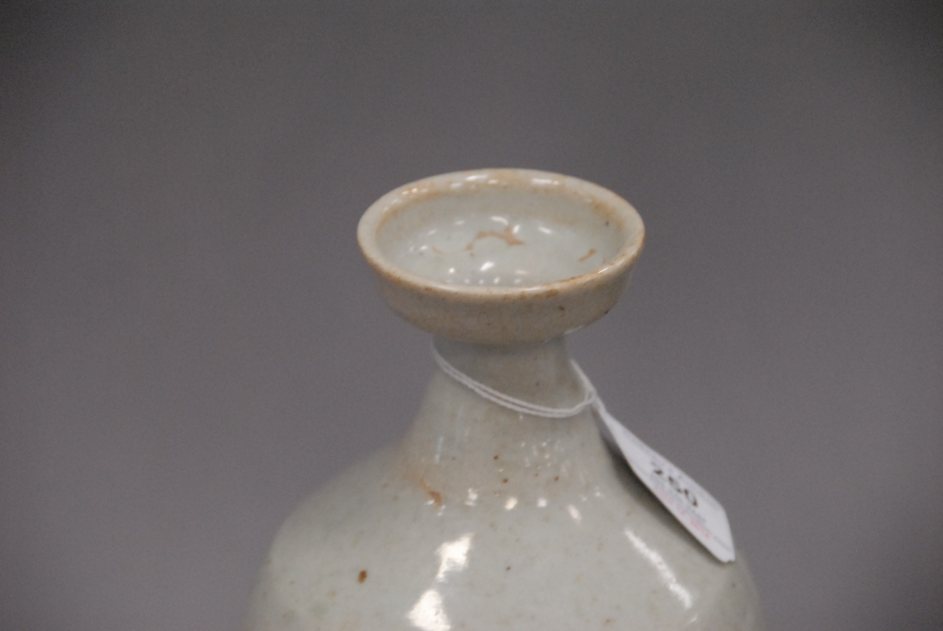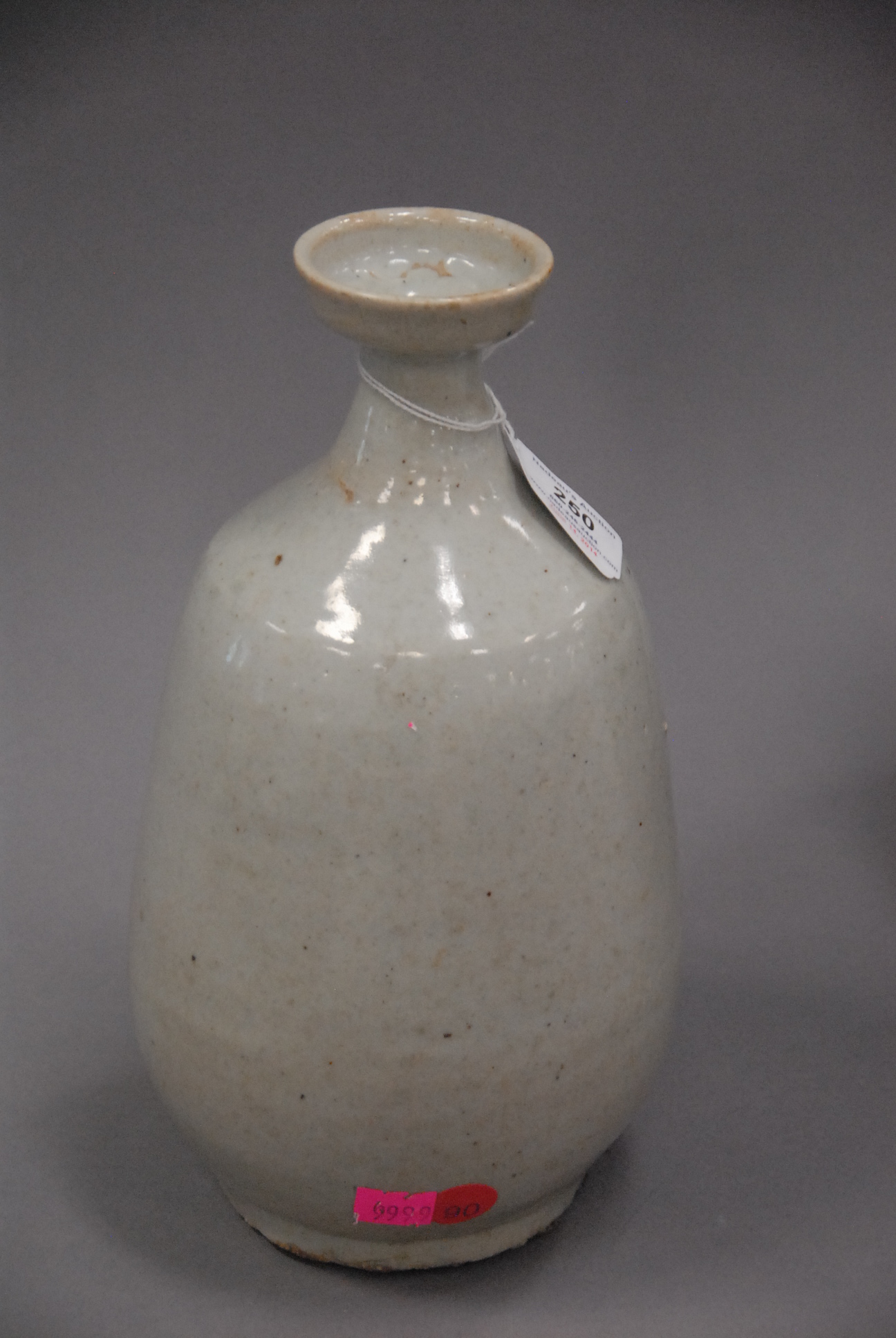 Lot 250: Porcelain monochrome vase, Yuan Dynasty, with overall cream glaze and bowl-shaped mouth rim ht. 10in.
