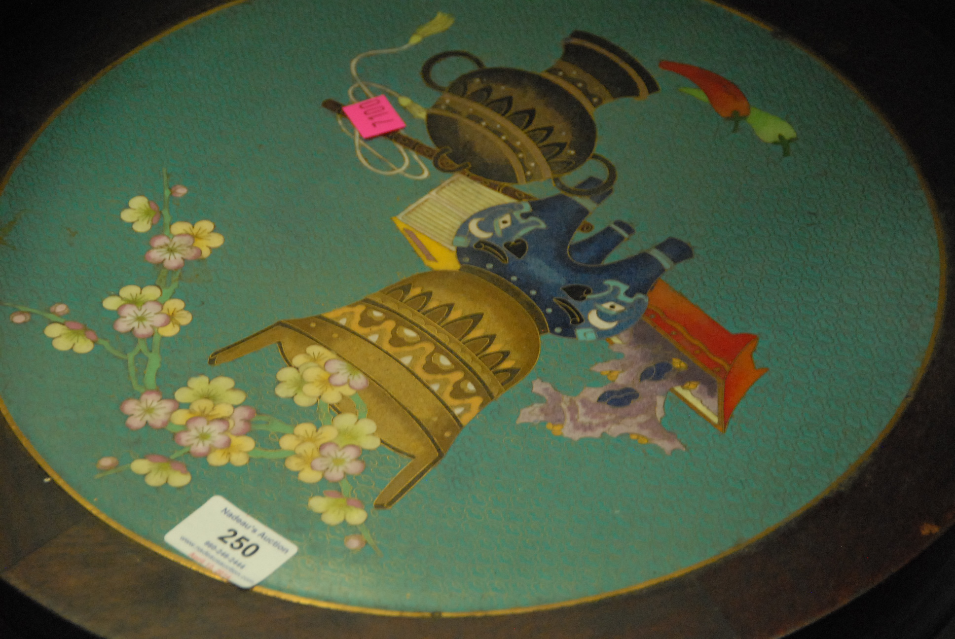 Teak Chinese table with cloisonne top.