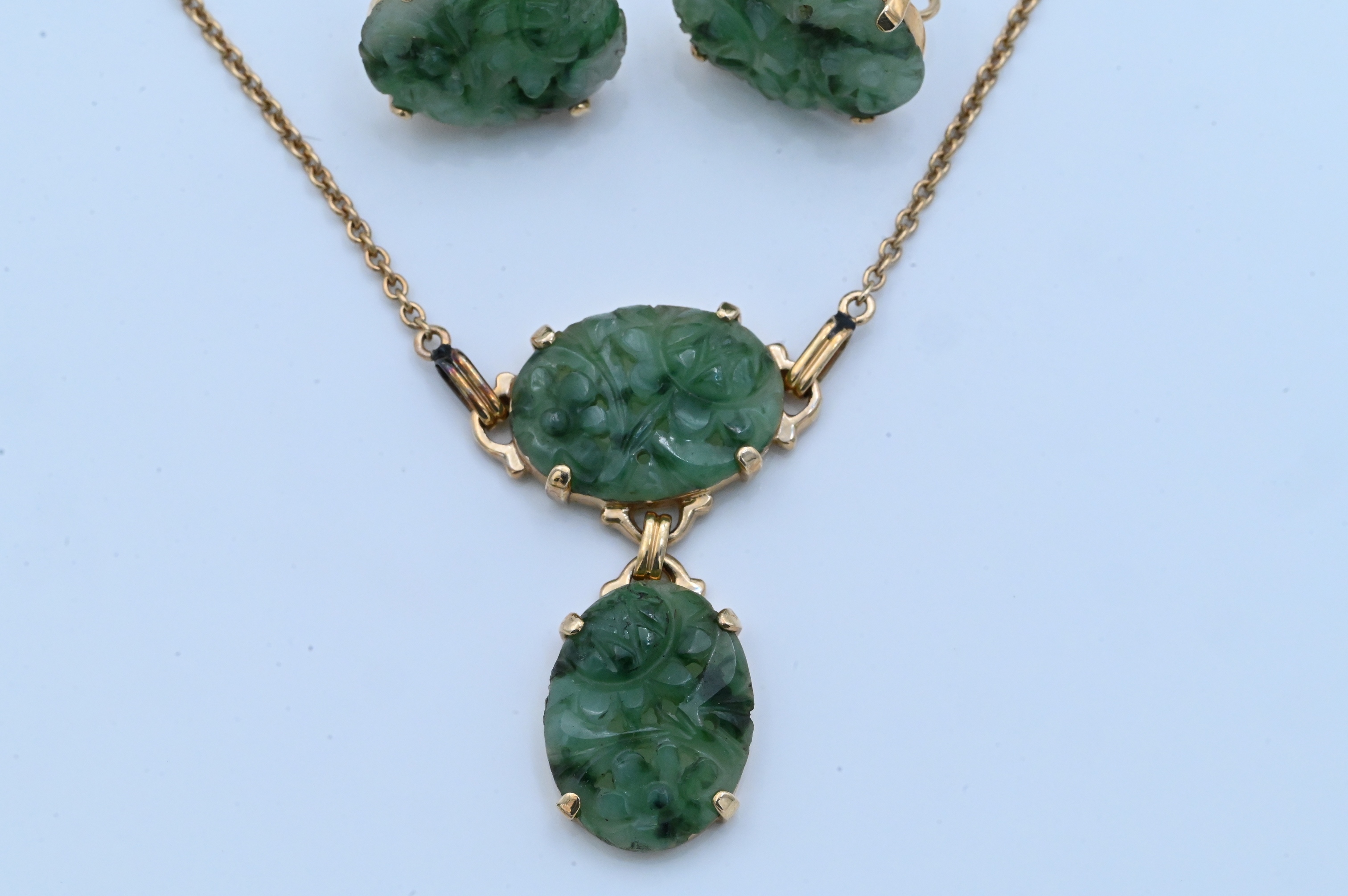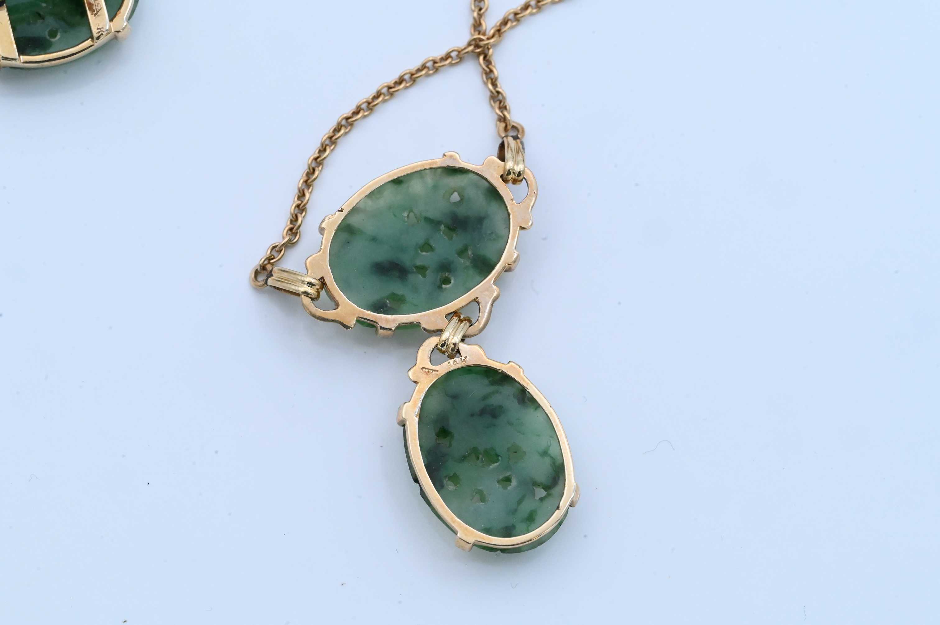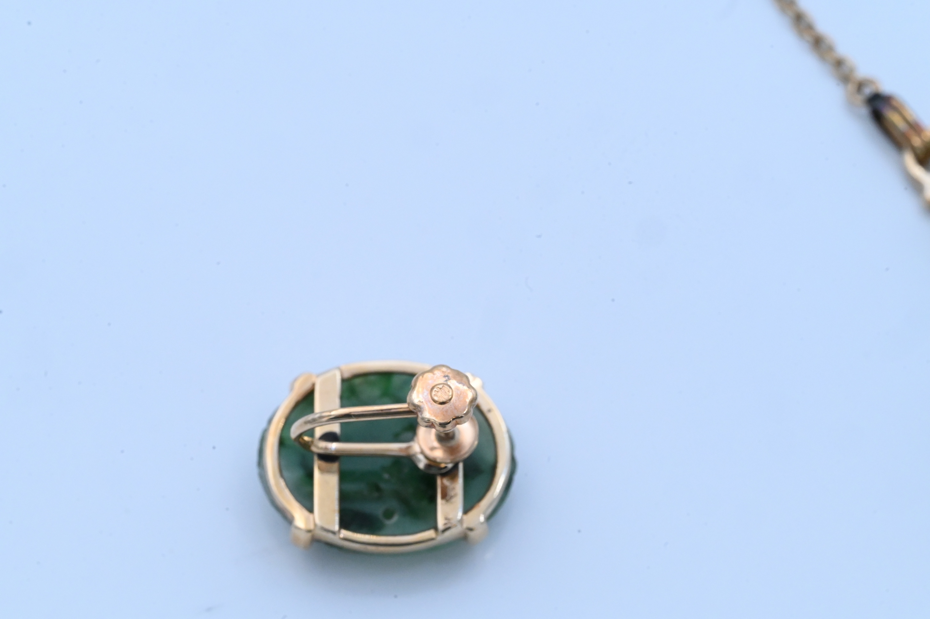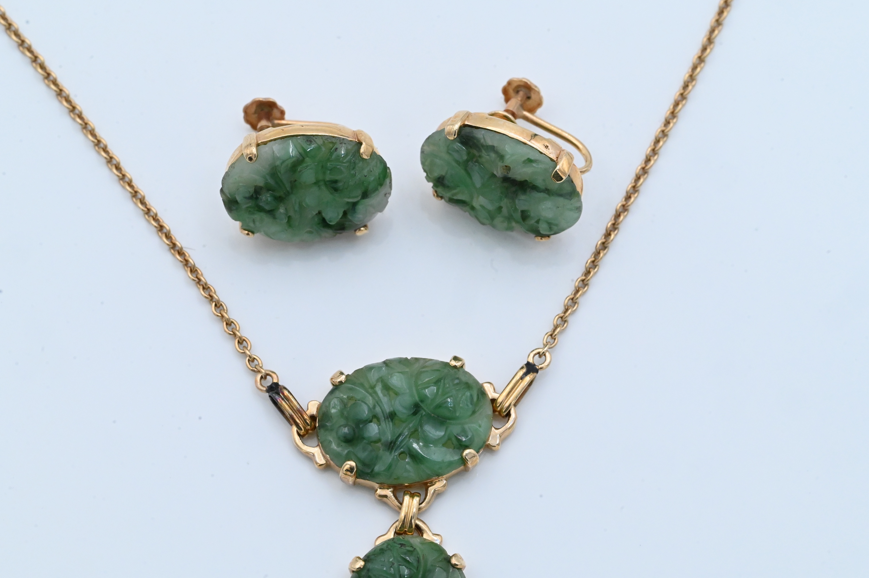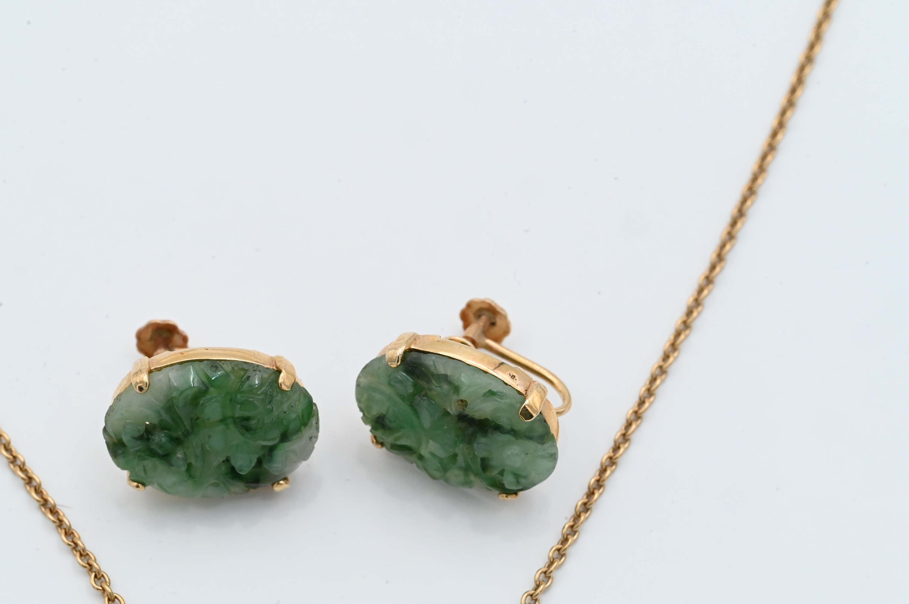 Lot 250: Three Piece 14K Yellow Gold and Jade Set