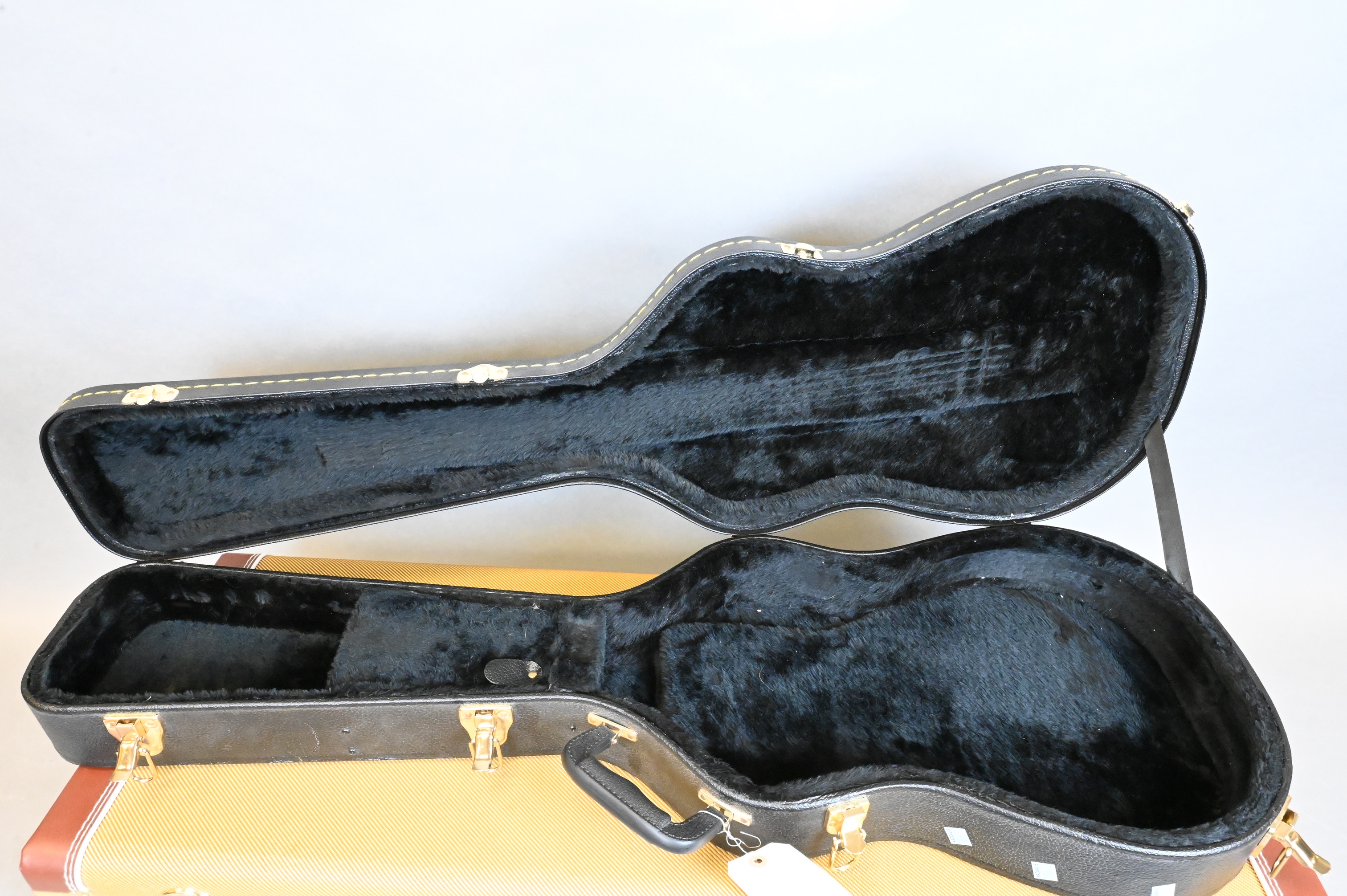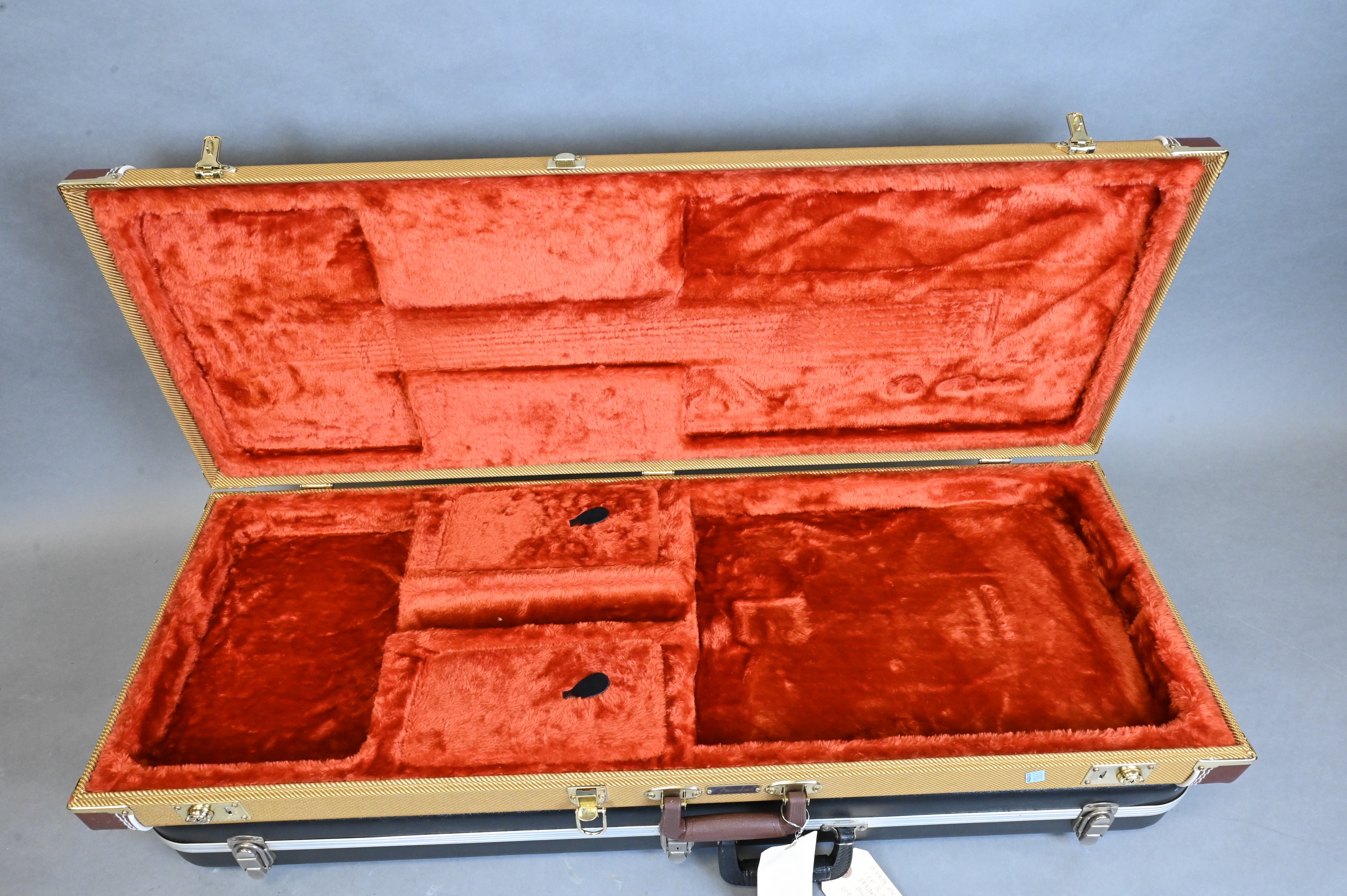 to include vintage 1980 Fender Stratocaster molded hard case, Fender tweed hard case (fits stratocaster and telecasters), and a black hard case that fits Les Paul size guitars