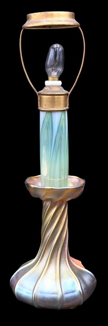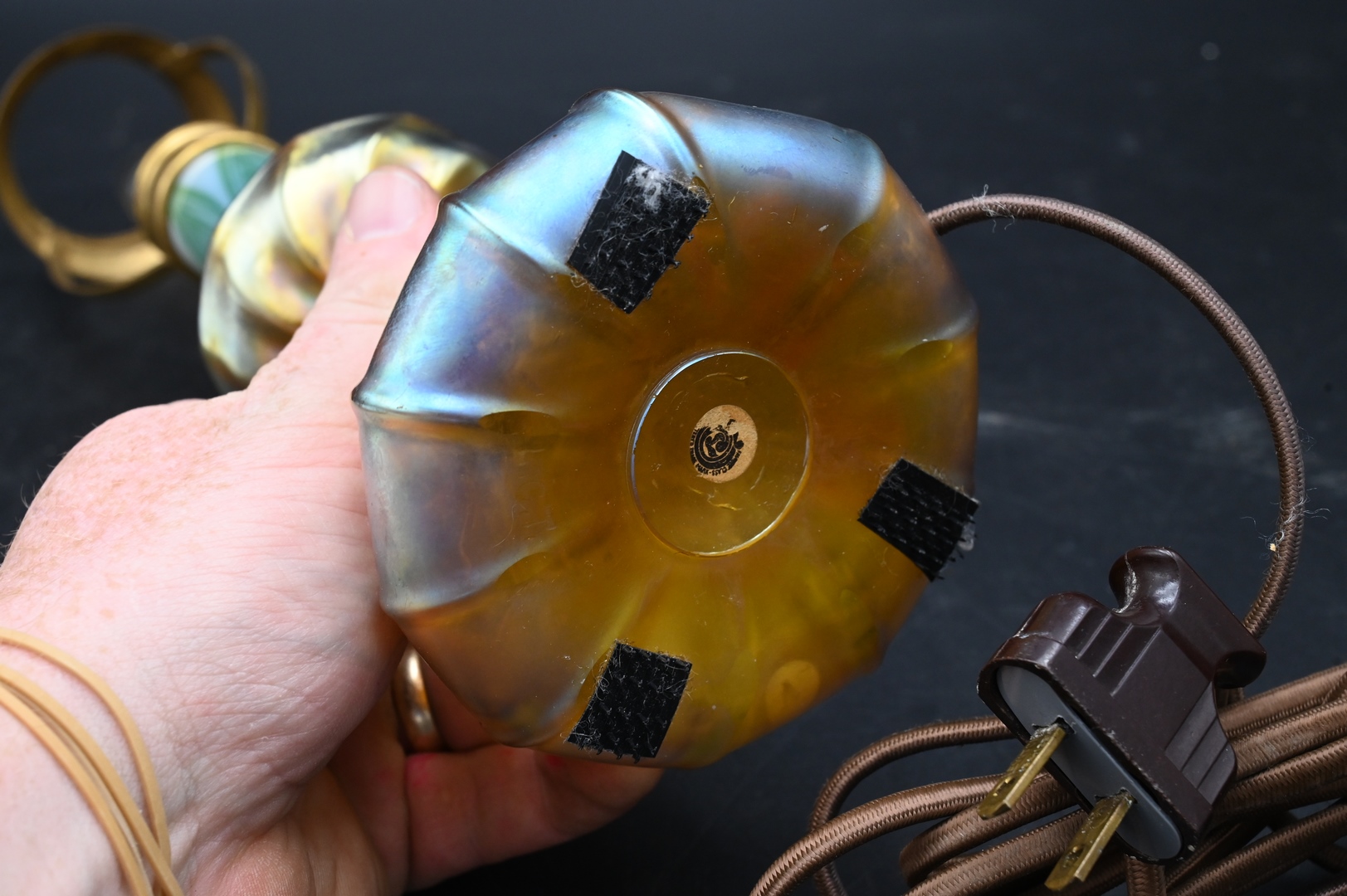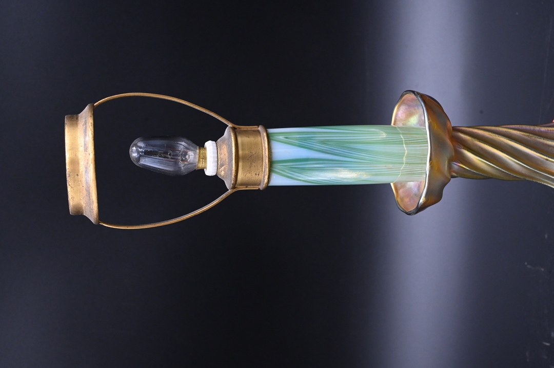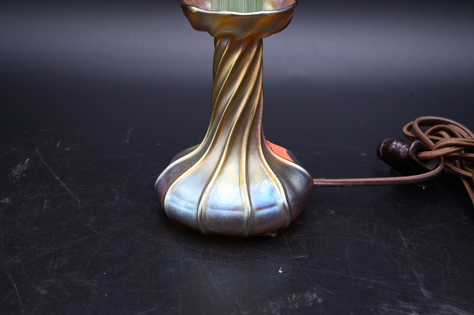 Tiffany & Company Gold Iridescent Fairy Lamp, signed lower center and marked with paper label, height 13 inches.