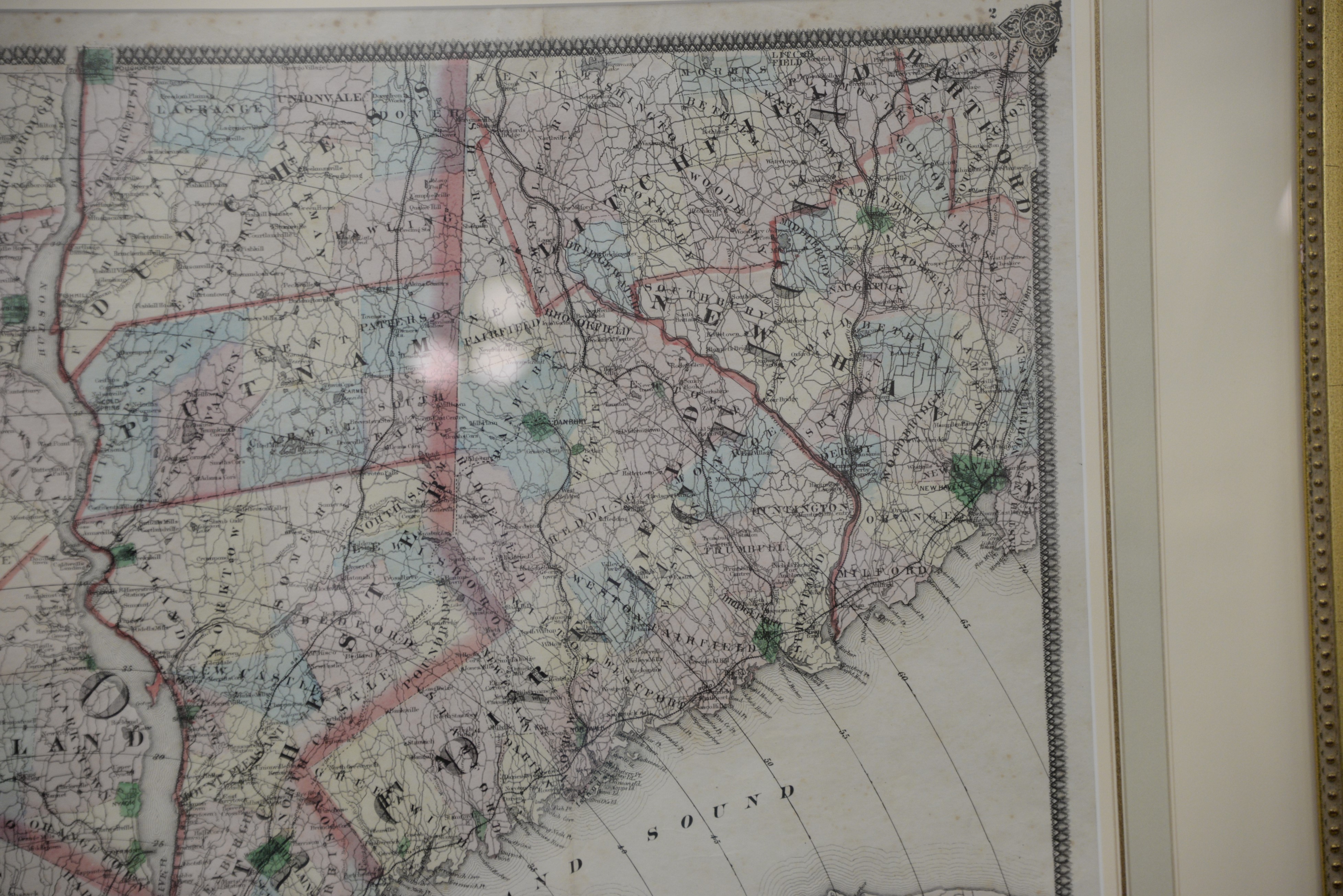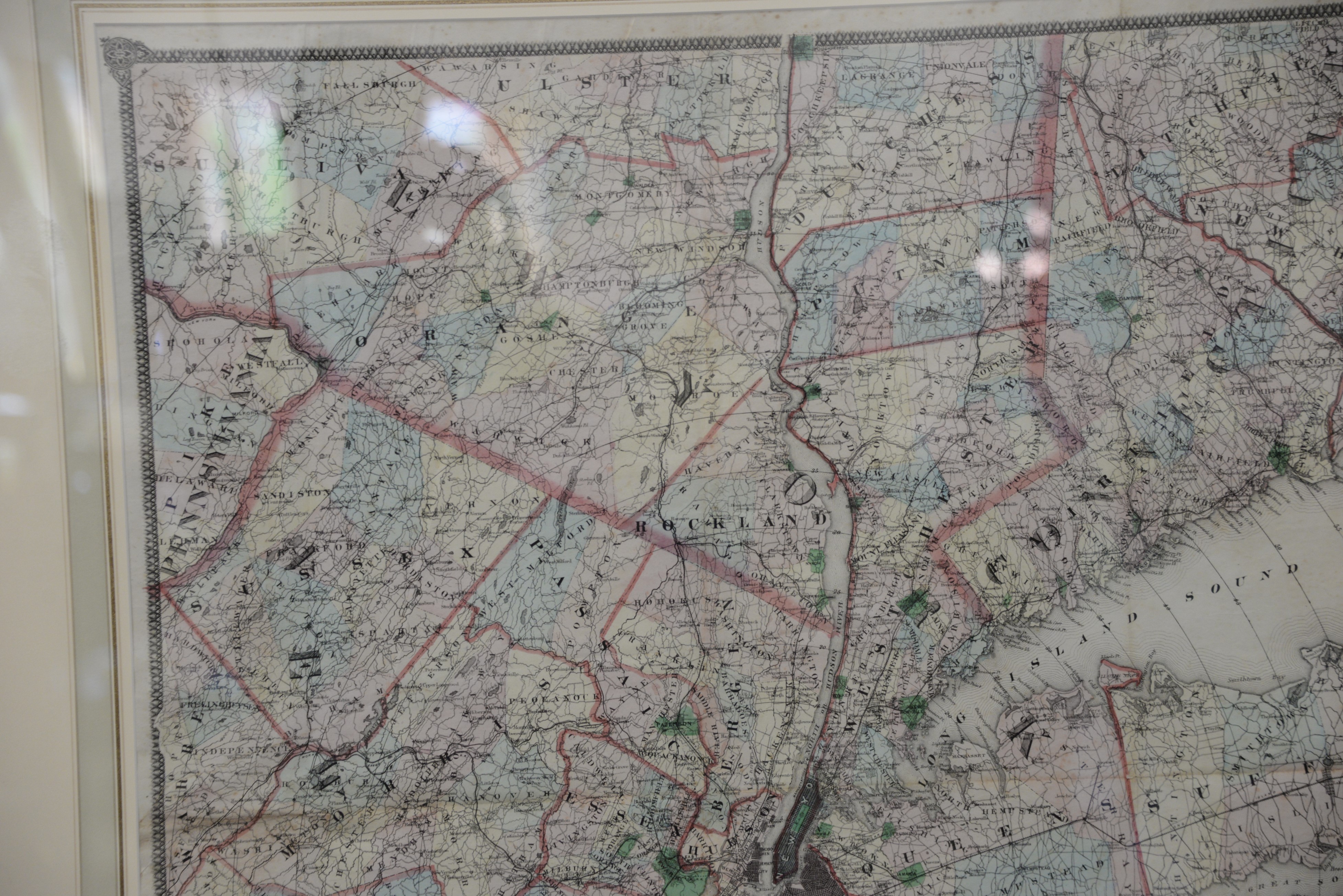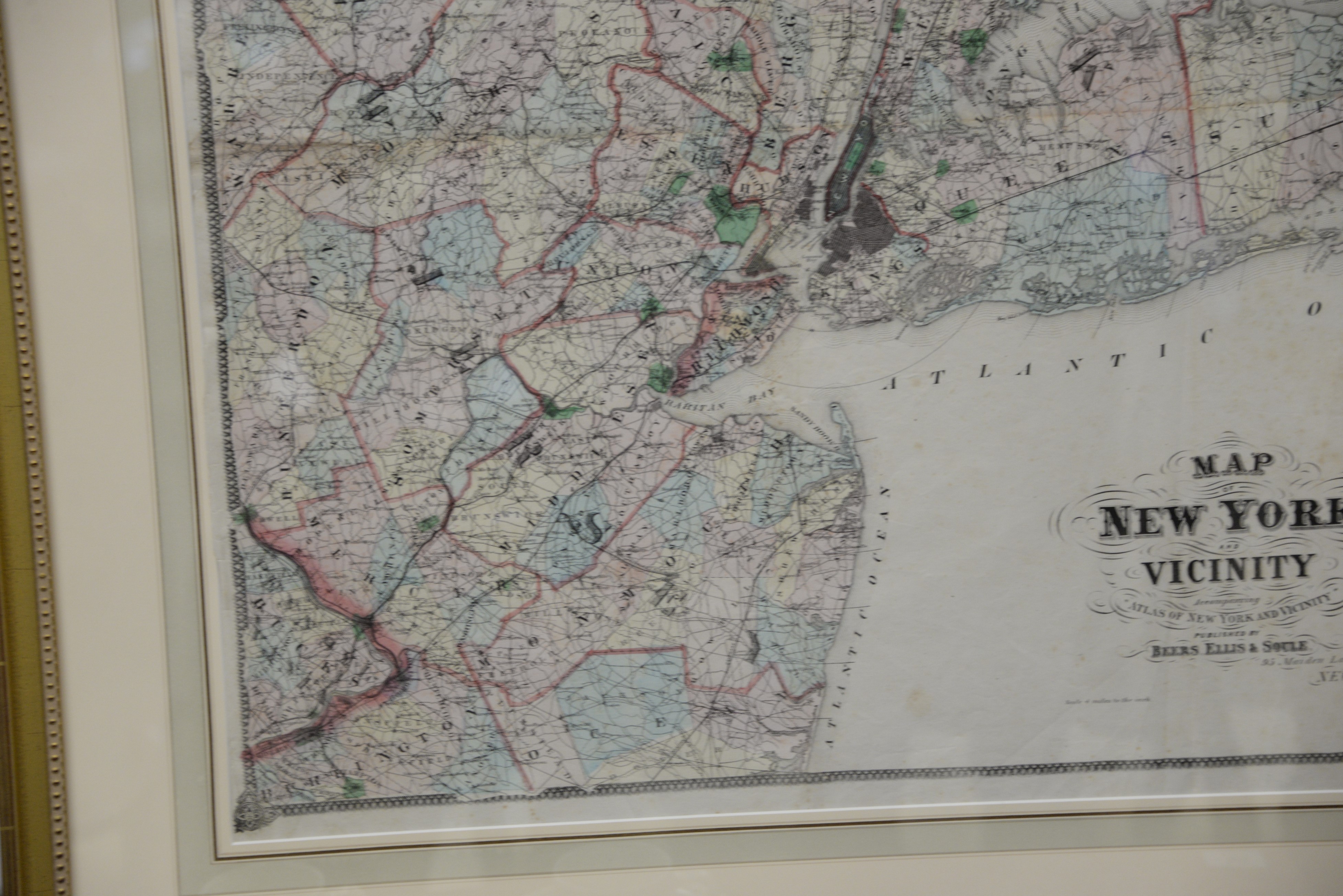 Beers, Ellis & Soule 1868 hand color engraving, Map of New York and Vicinity from Actual Surveys, engraved by Worley and Bracher and printed by James McGuigan, framed by Wesley Allen Framemakers, 30 3/4 x 28 1/2 sight size. Property from Credit Suisse’s Americana Collection