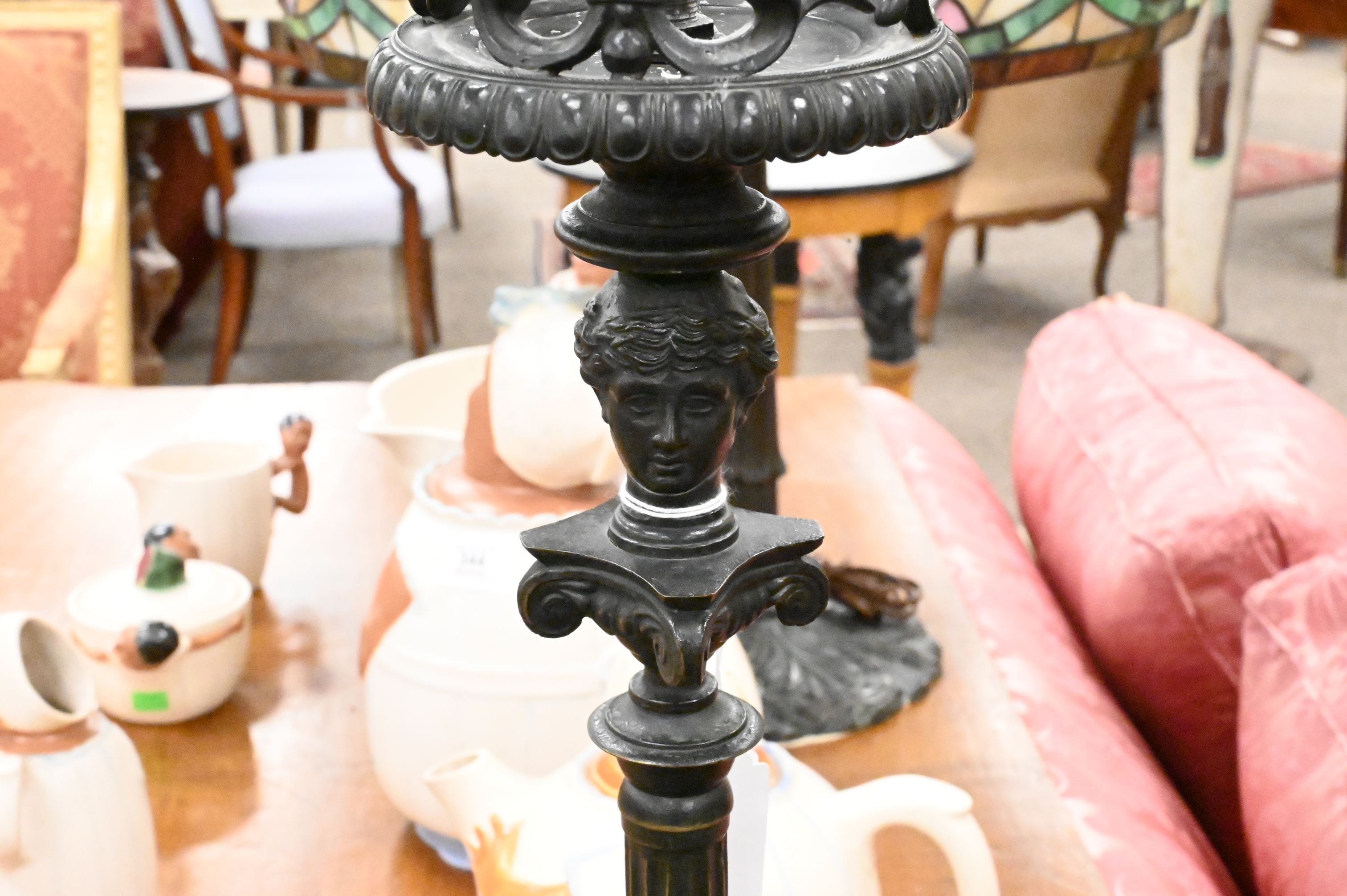 having woman’s head on fluted shaft set on three paw feet, no light, no wiring, 19th century
