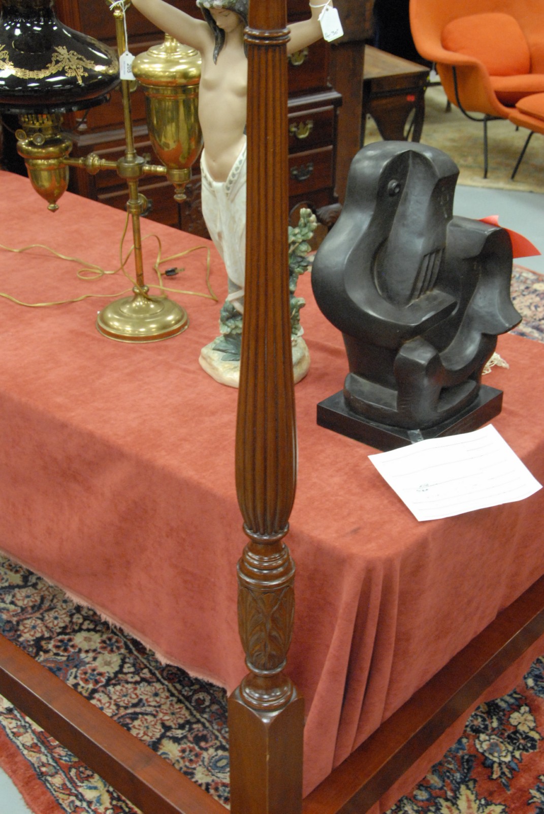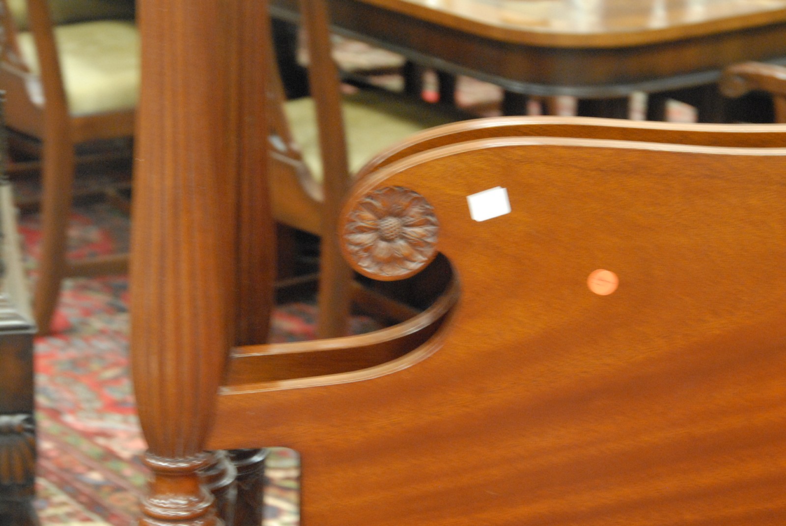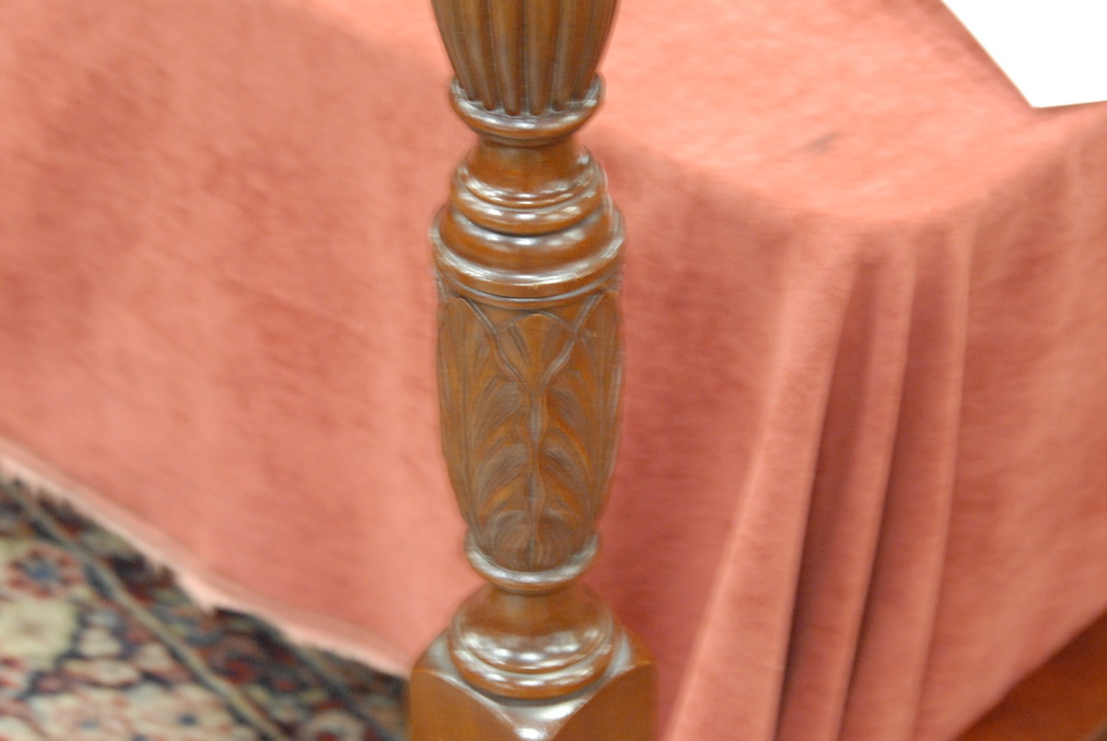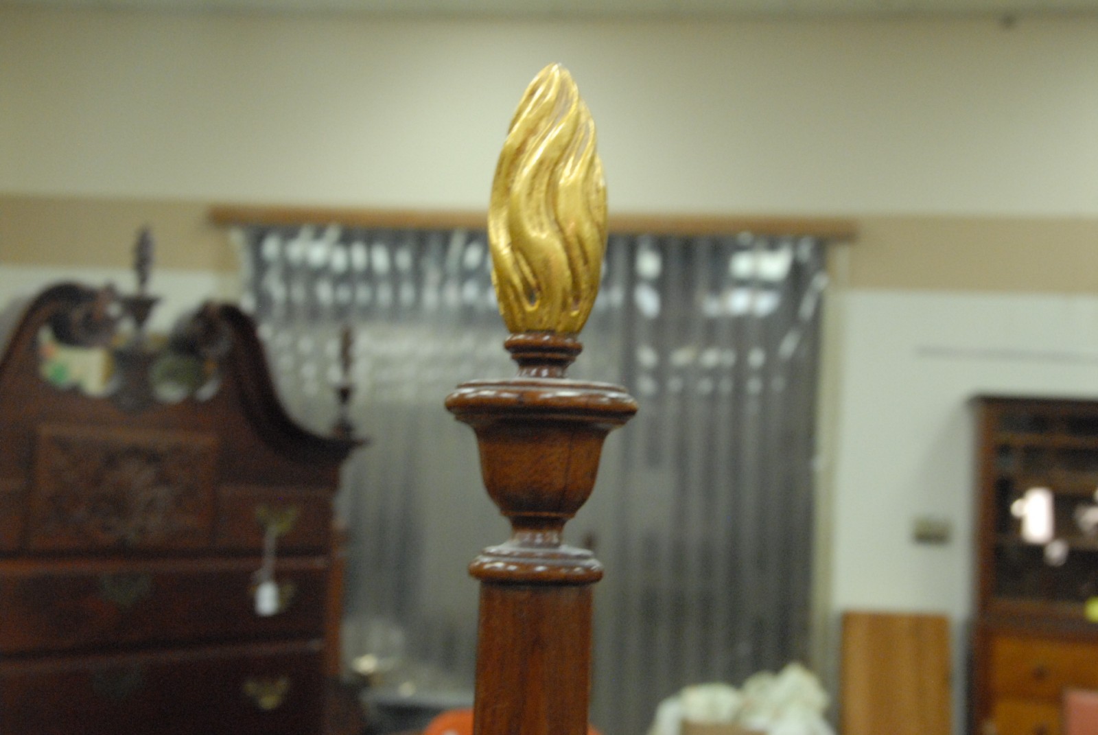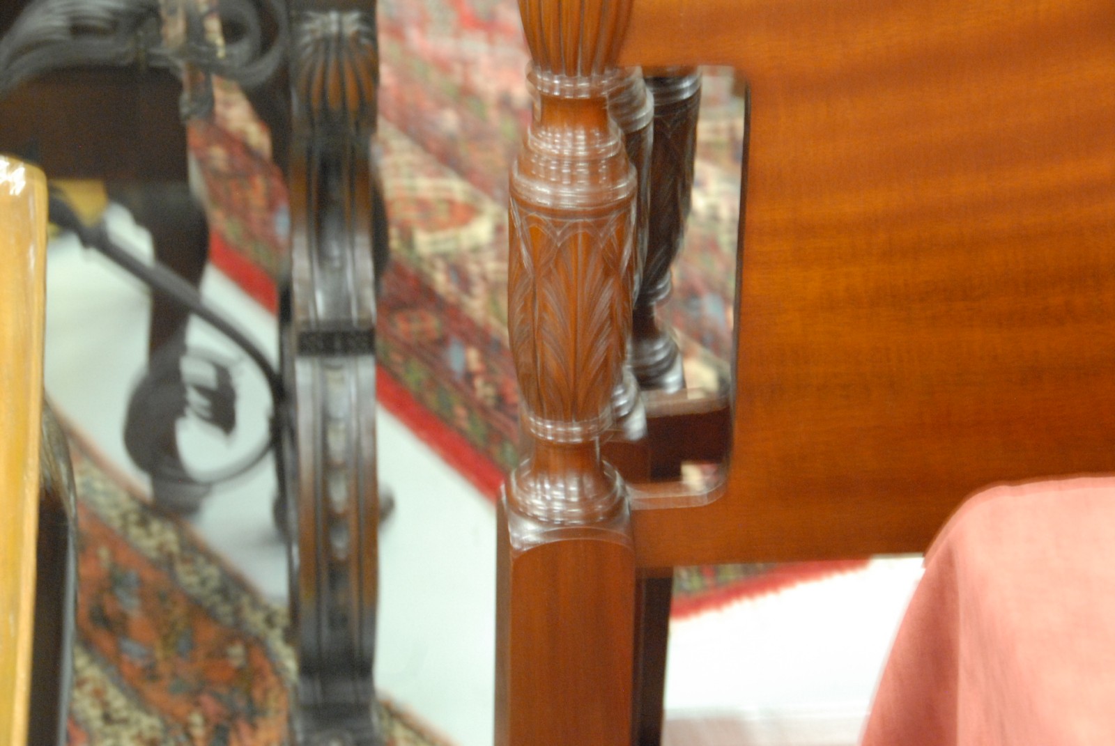 Margolis pair of twin four post beds with gilt finials and reeded posts signed Margolis Hartford CT.