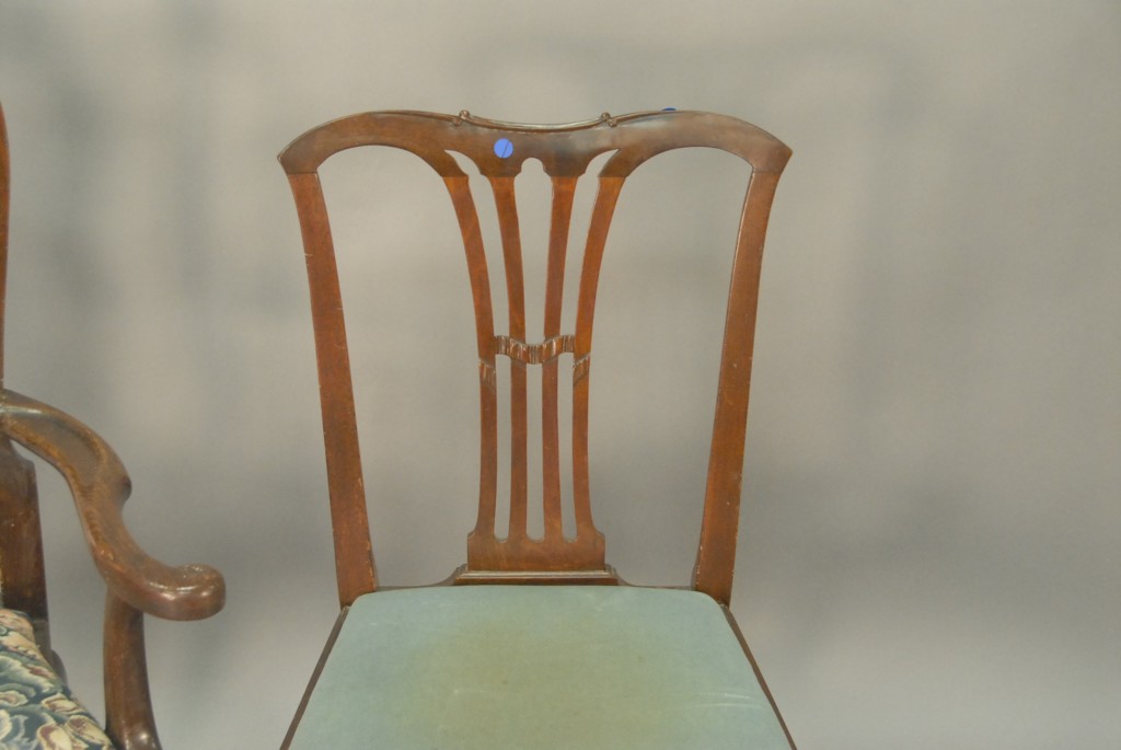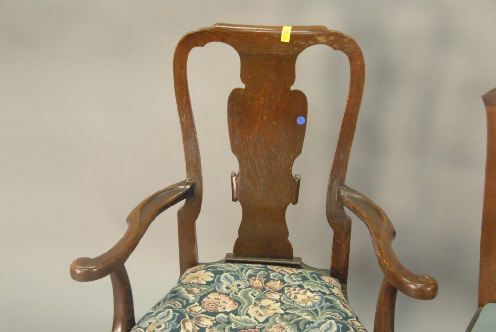 Two chairs Queen Anne oak armchair and Chippendale side chair.