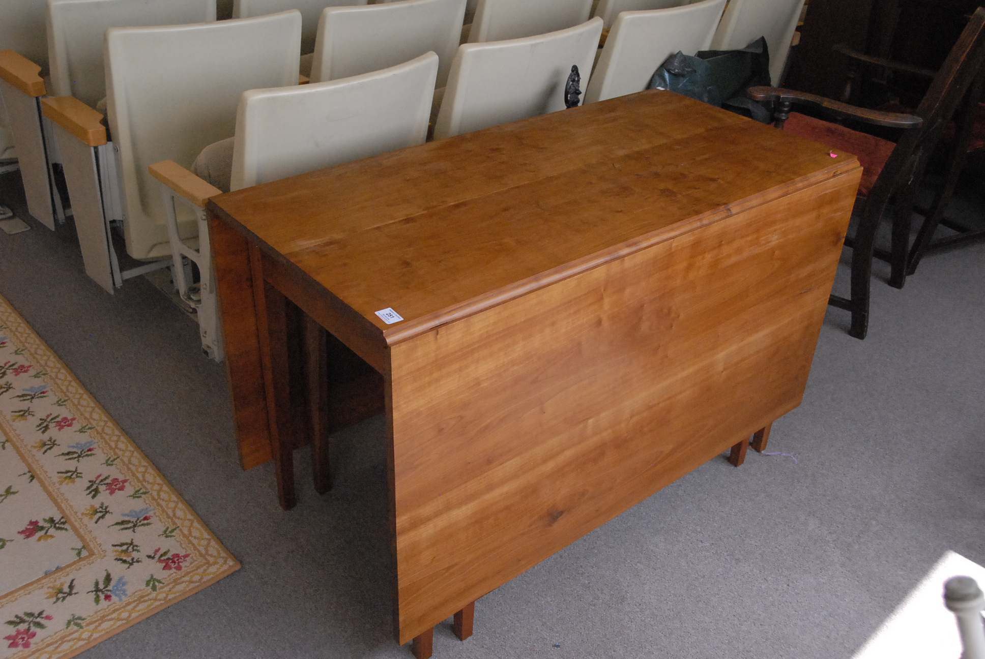 Two piece lot to include a cherry drop leaf dining table and a magazine rack.