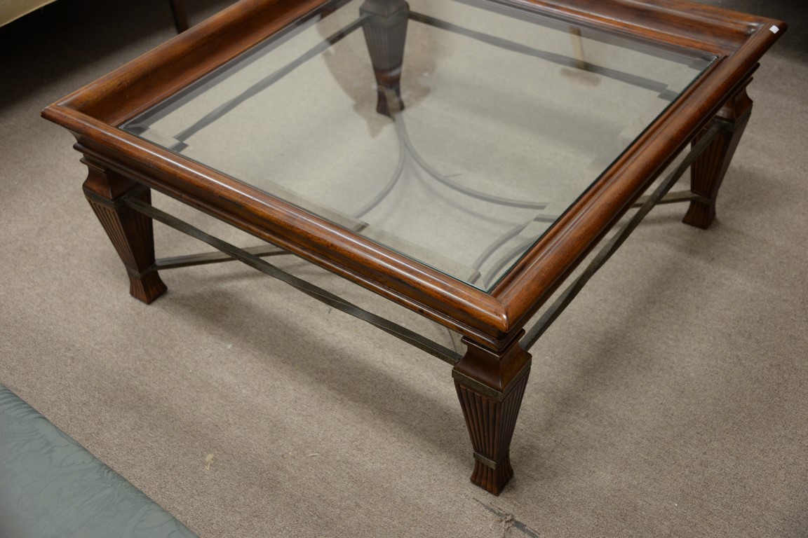 Lot 251: Two piece lot to include mahogany coffee table with glass top top: 40 x 40 and a mahogany tea cart.