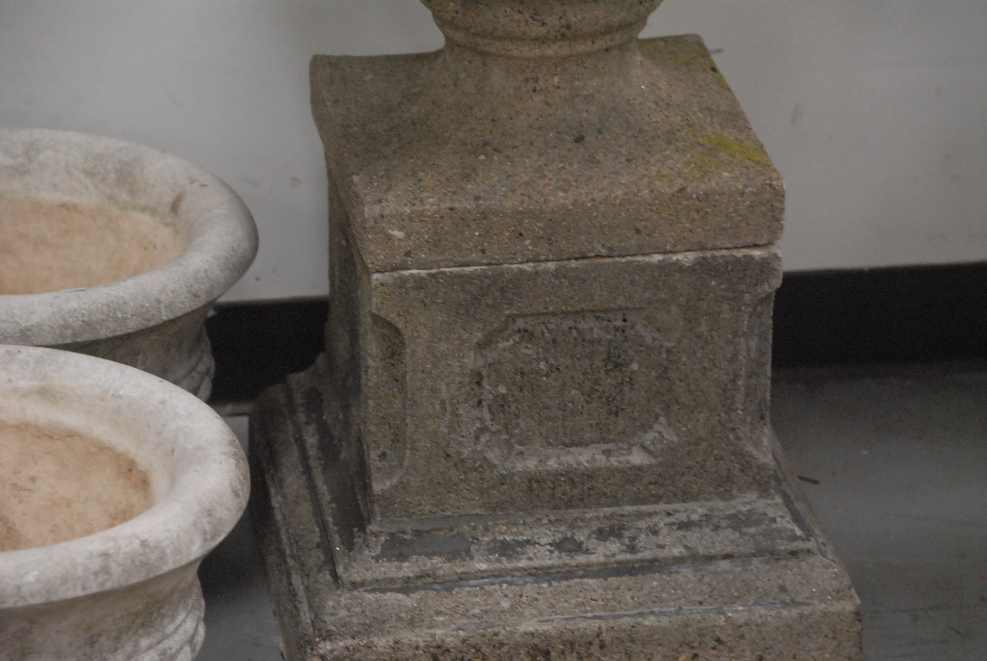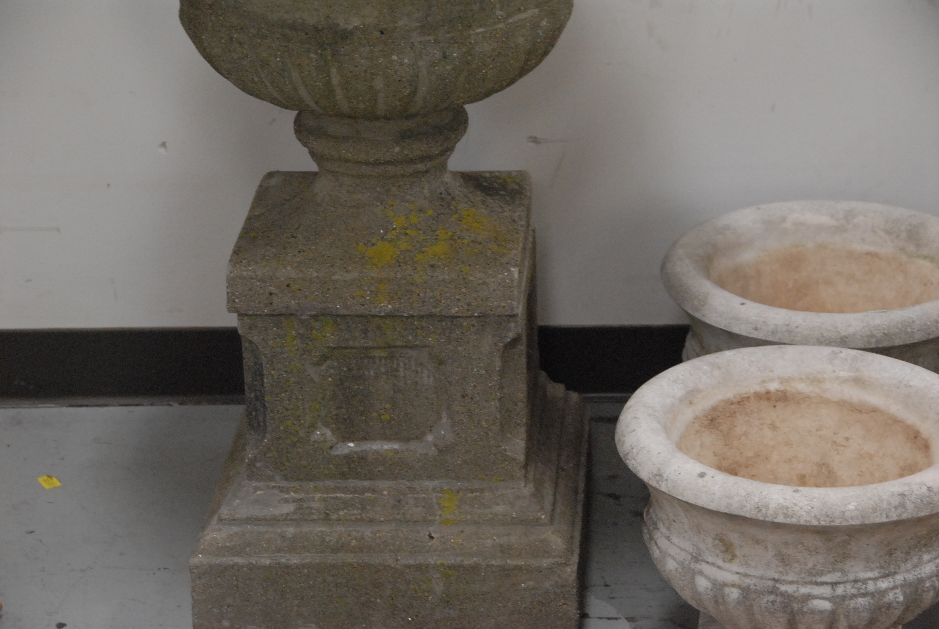 Lot 251A: Group of four cement planters, 2 are two-part planters, ht. 13in. dia. 14in. and ht. 34in. dia. 25in.