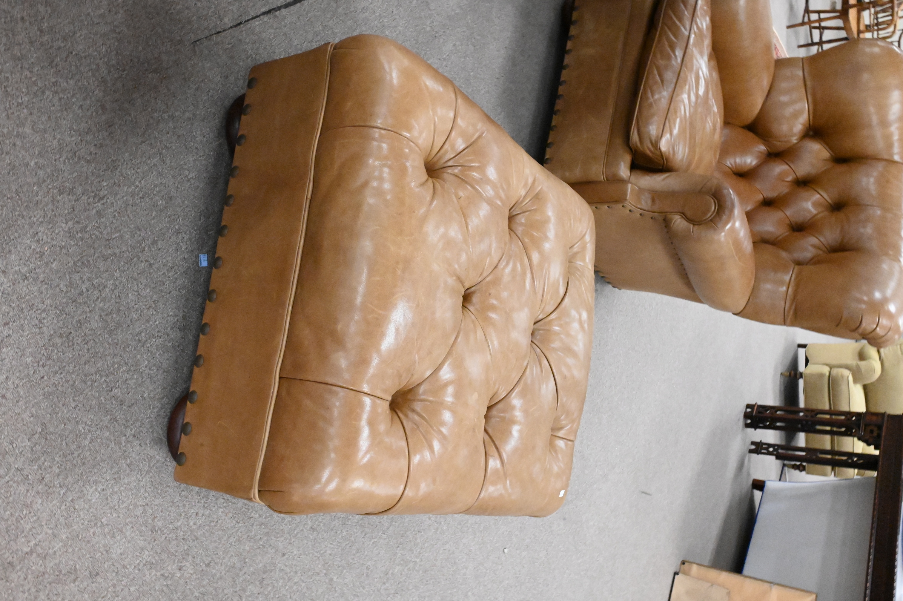Lot 251A: Ralph Lauren Tan Leather Upholstered Easy Chair and Ottoman